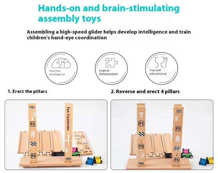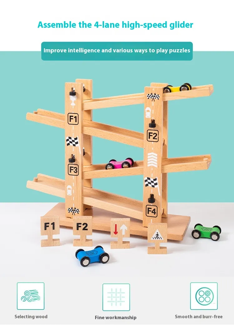 The Four Track Gliding Car Children Educational Assembly Track Wooden Toy is more than just a toy; it’s a tool