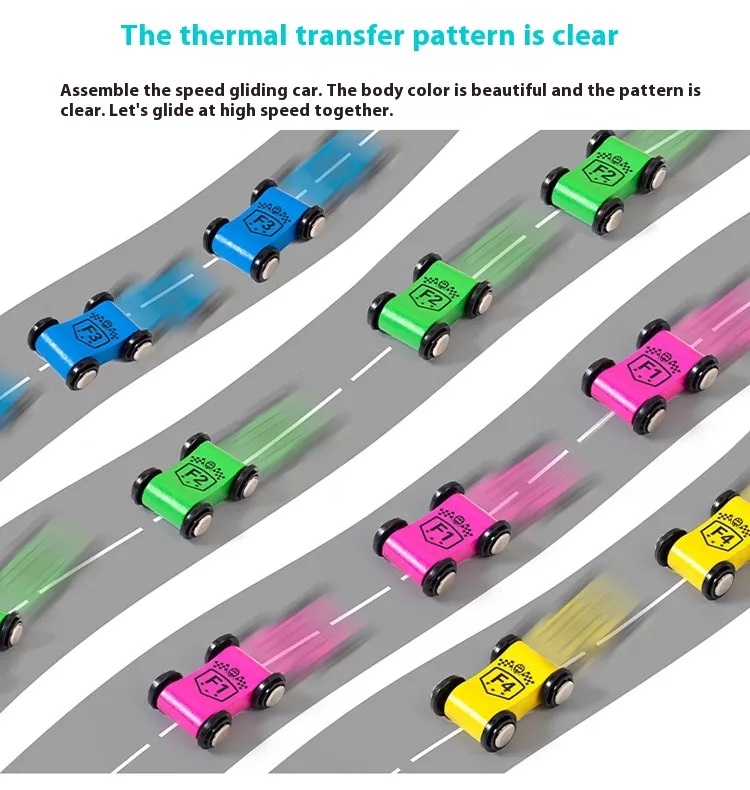 - Race the Cars: Once the track is assembled, place the gliding cars on the tracks and watch them zoom down to the bottom. Experiment with different angles and track layouts to change the speed and trajectory of the cars.