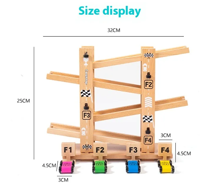 Four Track Gliding Car Children Educational Assembly Track Wooden Toy