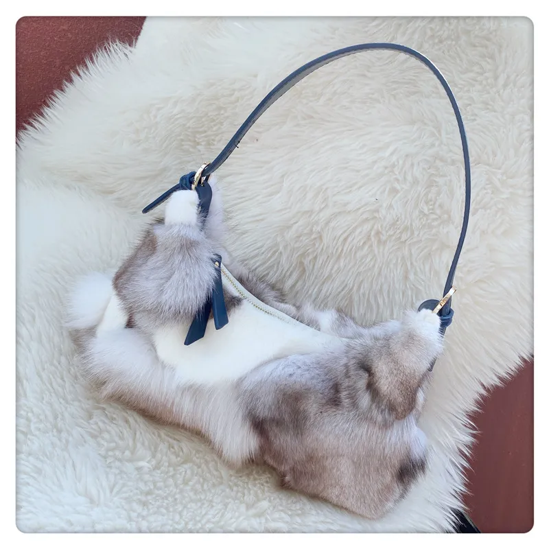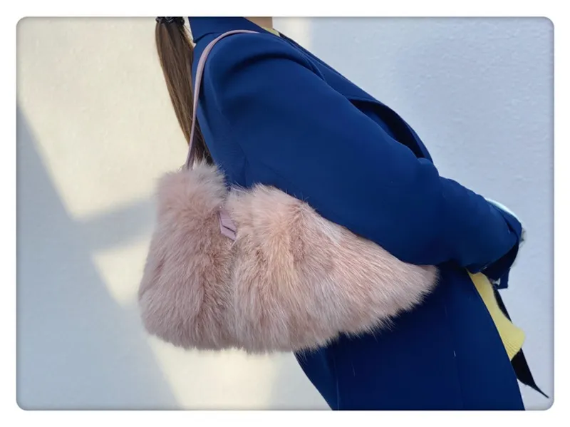Fox Fur Stitching Women's Handbag Temperament Novel Zipper Design