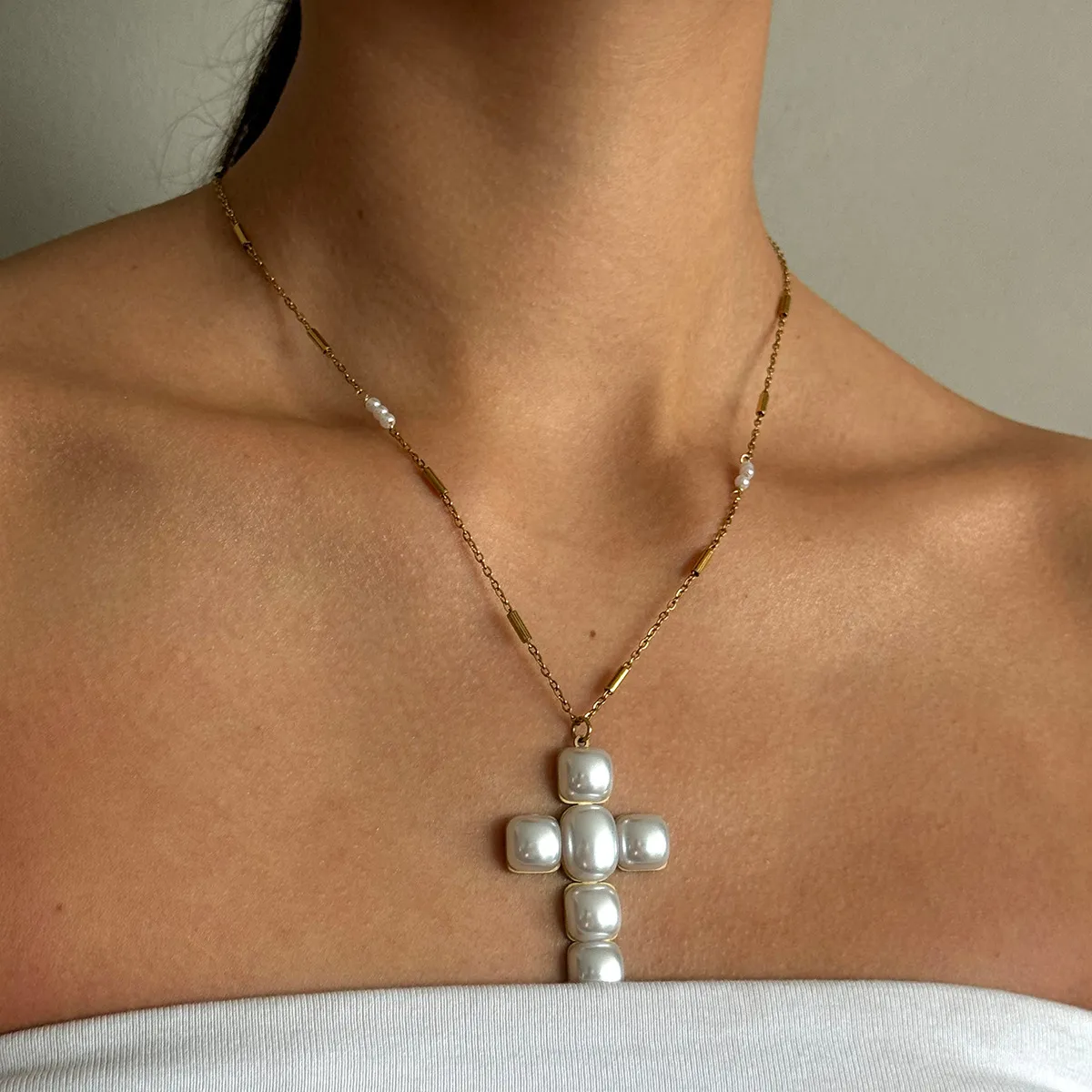 Elevate Your Style with the French Cross Pearl Pendant Necklace