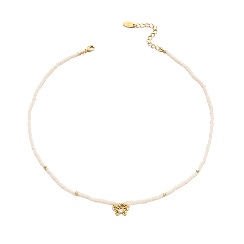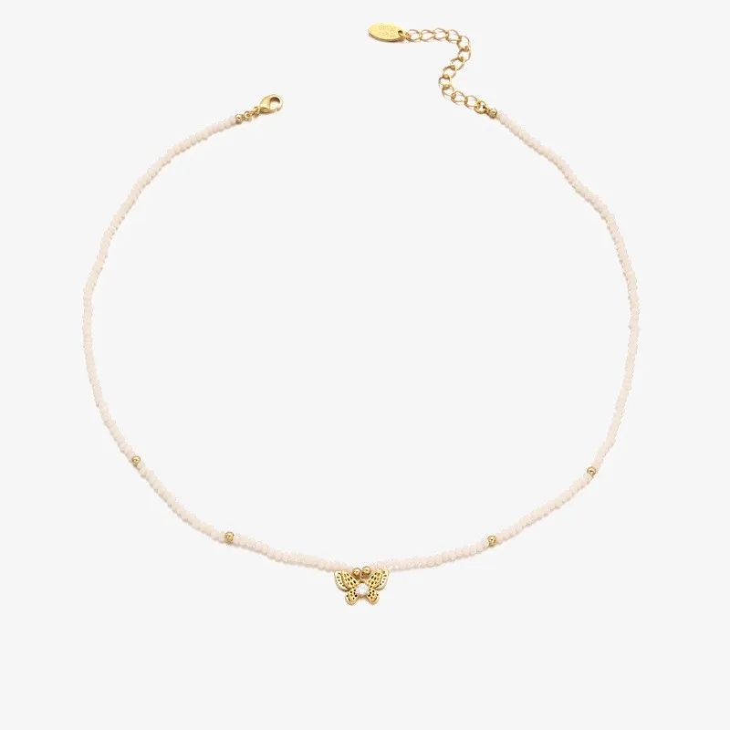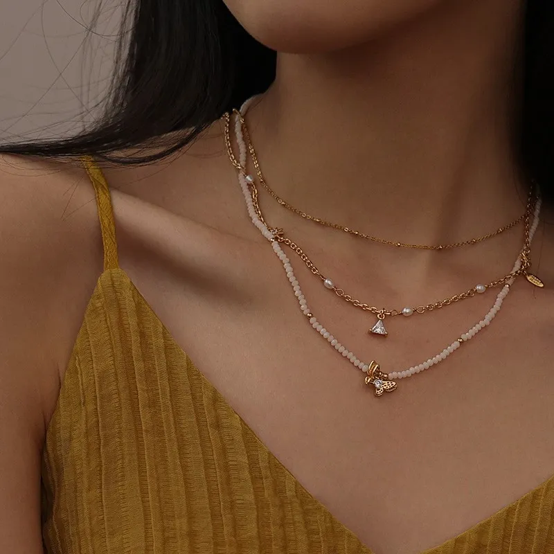 Color: Butterfly beaded necklace, gold triangle zircon necklace
