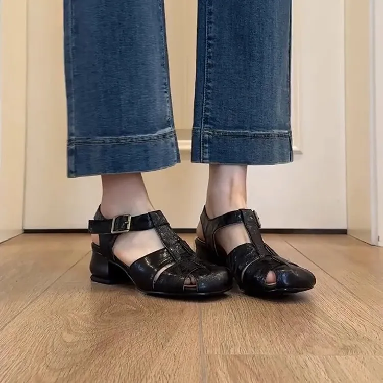French Gentle Commuter Roman Shoes – Women’s Woven Comfort & Style