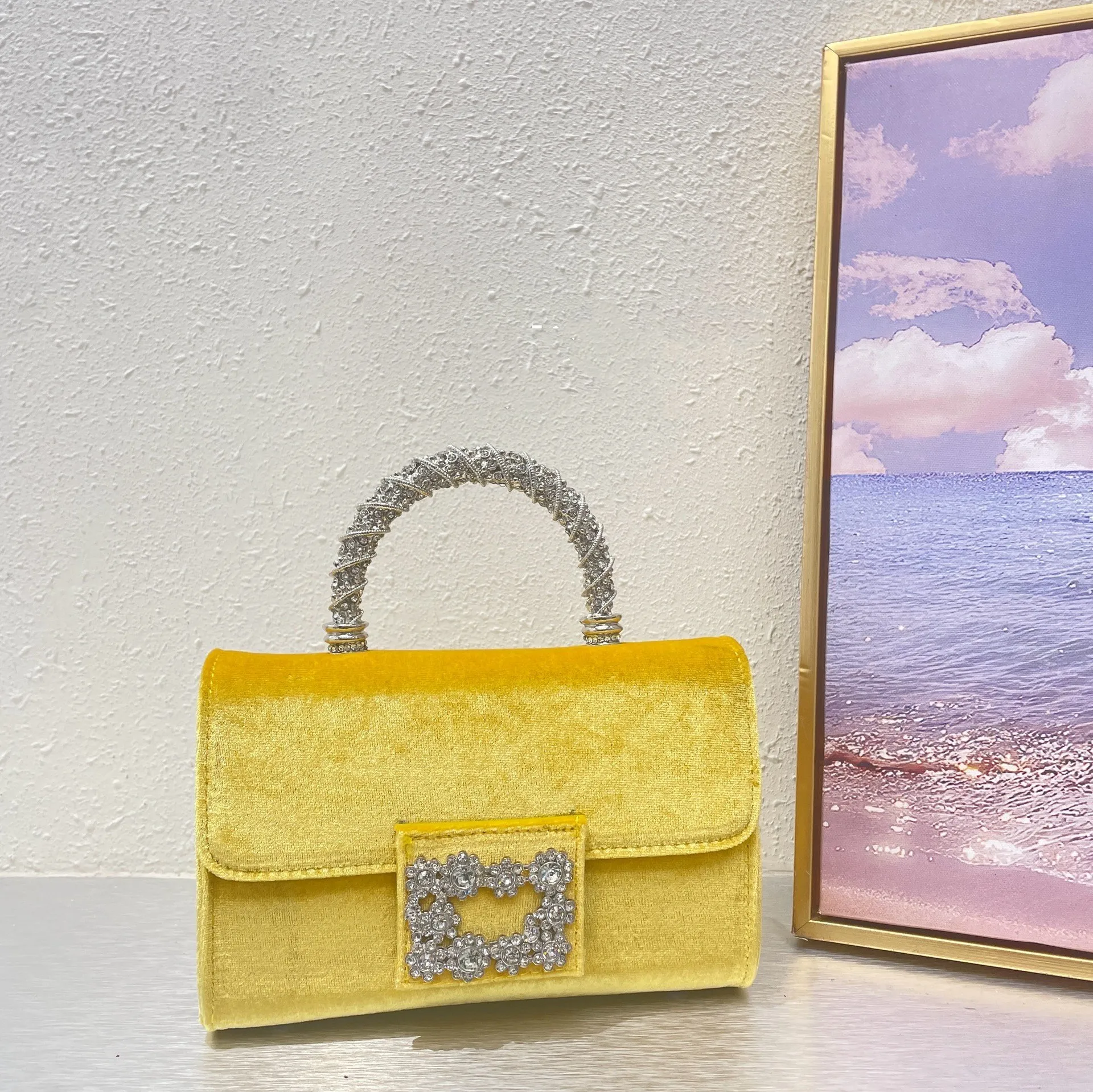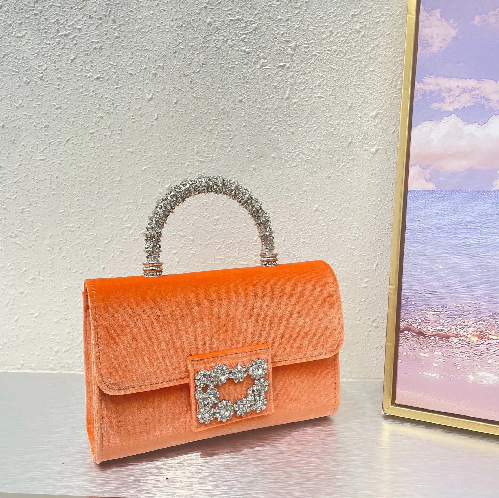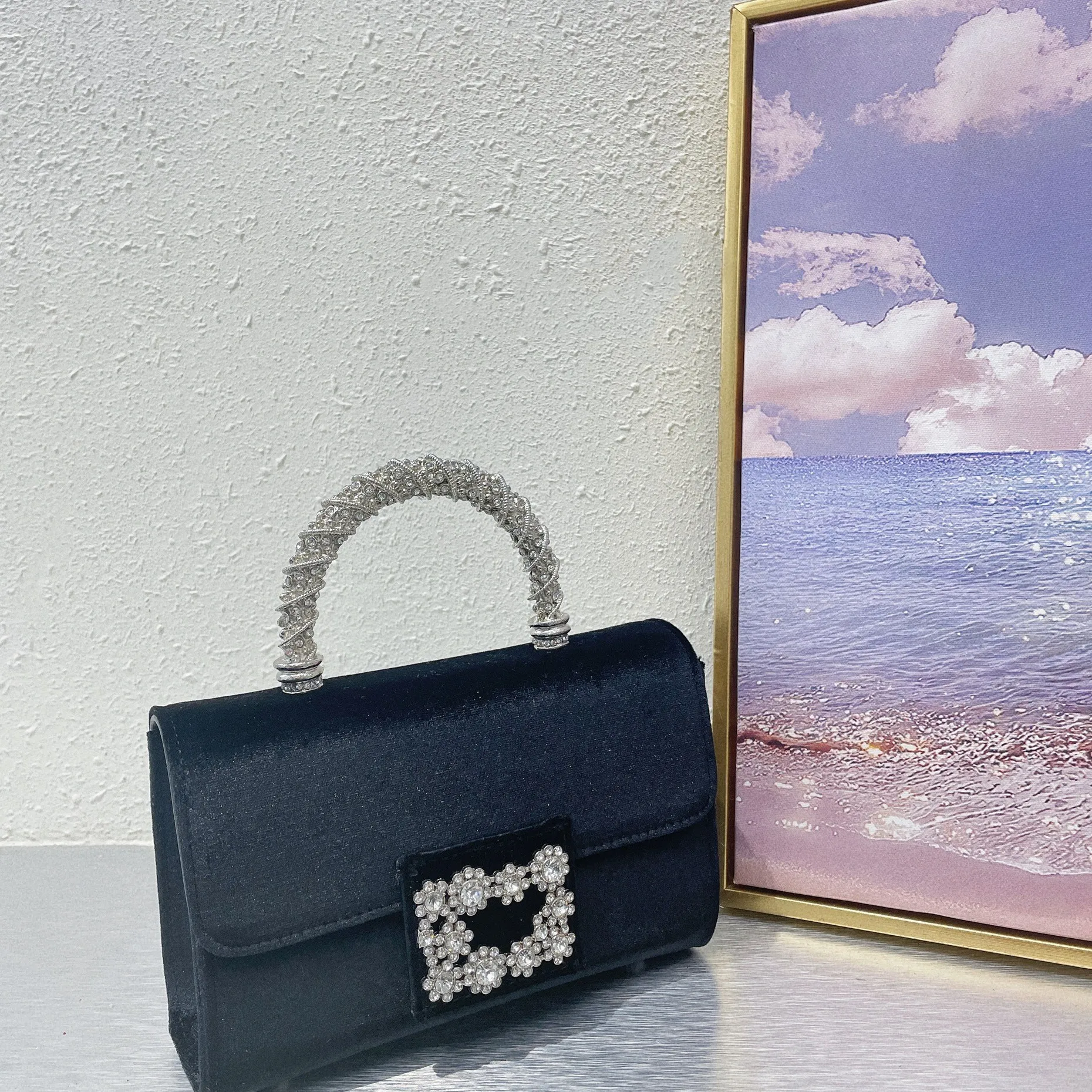 French Retro Shiny Rhinestone Flower Small Square Bag
