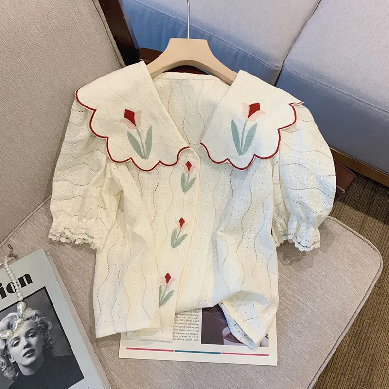 Why You’ll Love the French Style Doll Collar Embroidered Printed Short Sleeve Shirt