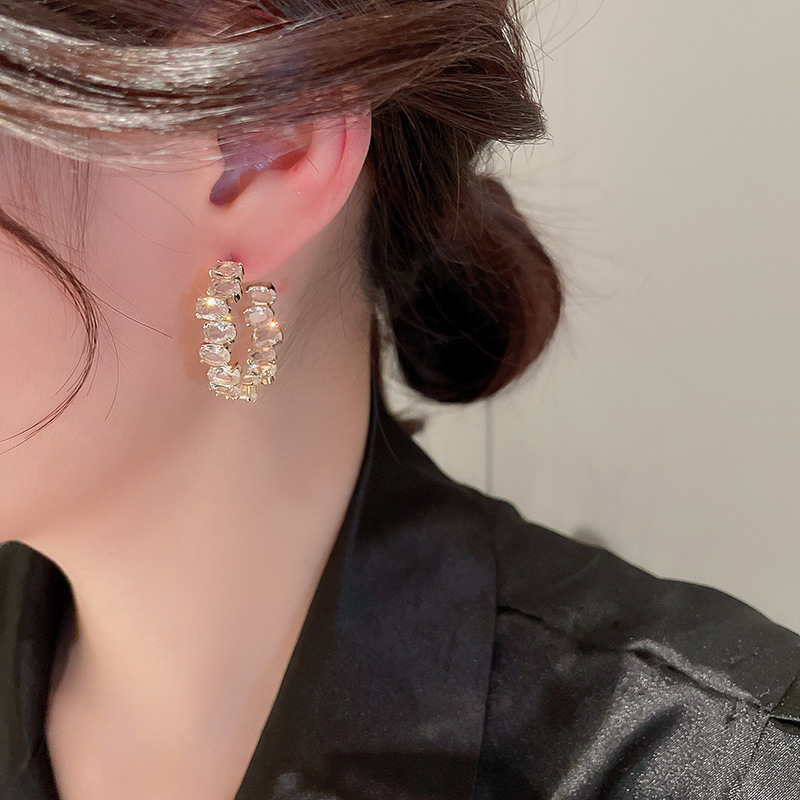 French Sweet Vintage Zircon C- Shaped Geometric Ear Ring