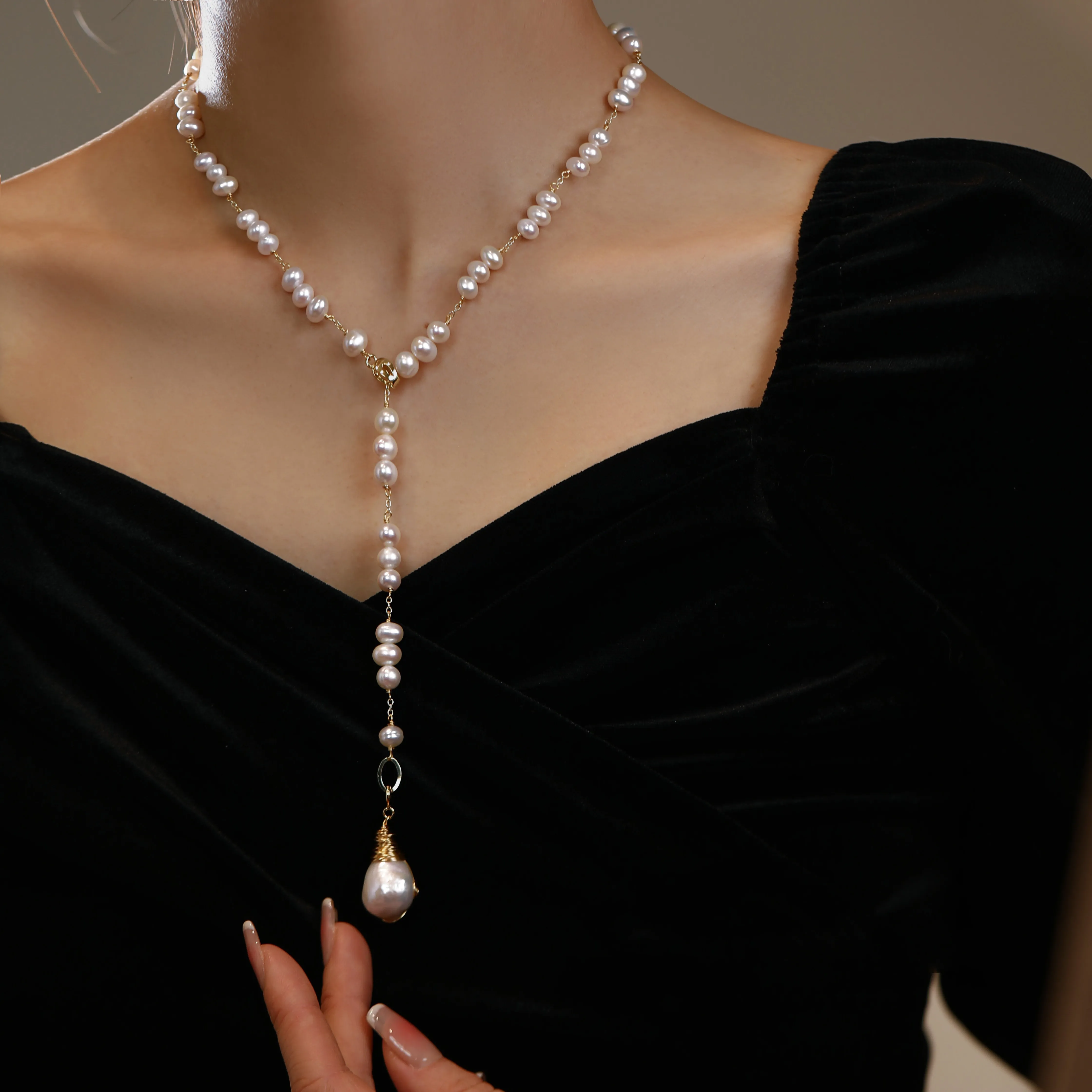 Color classification: water drop tassel pearl necklace