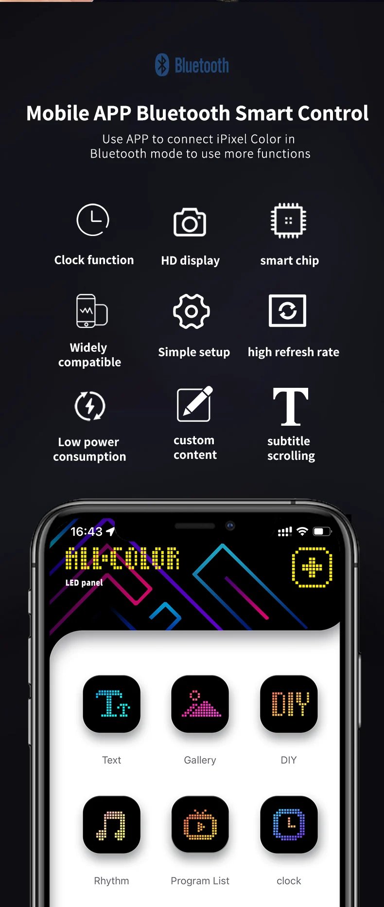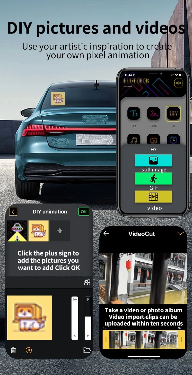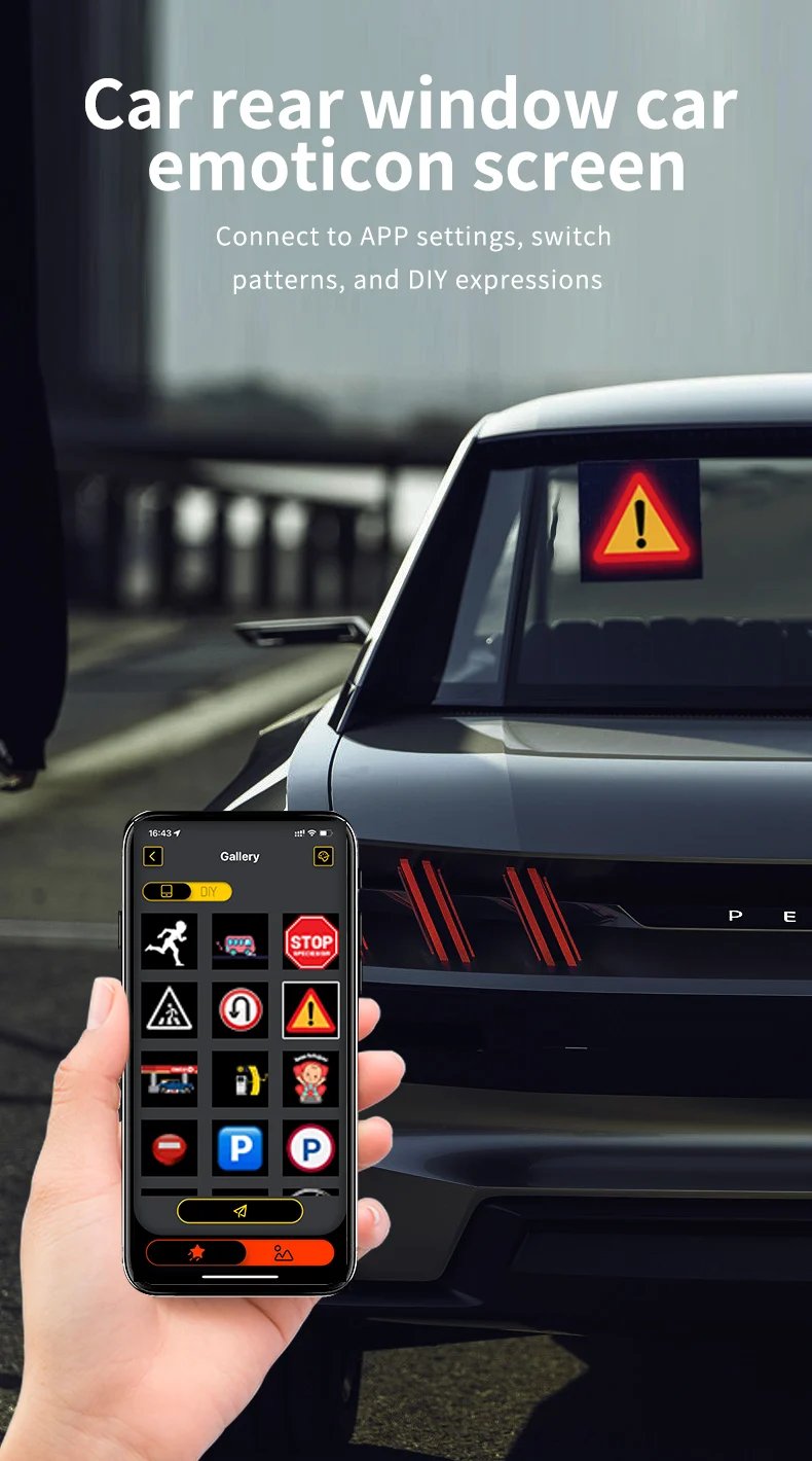 Design your very own personalized LED display with our DIY Bluetooth LED Display Screen. Whether you choose from our built-in animations and pre-set symbols or design your own animated GIFs or images, your display will be truly unique.