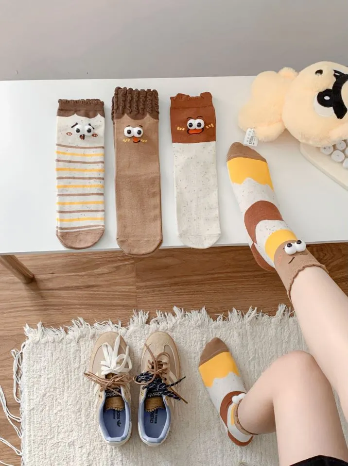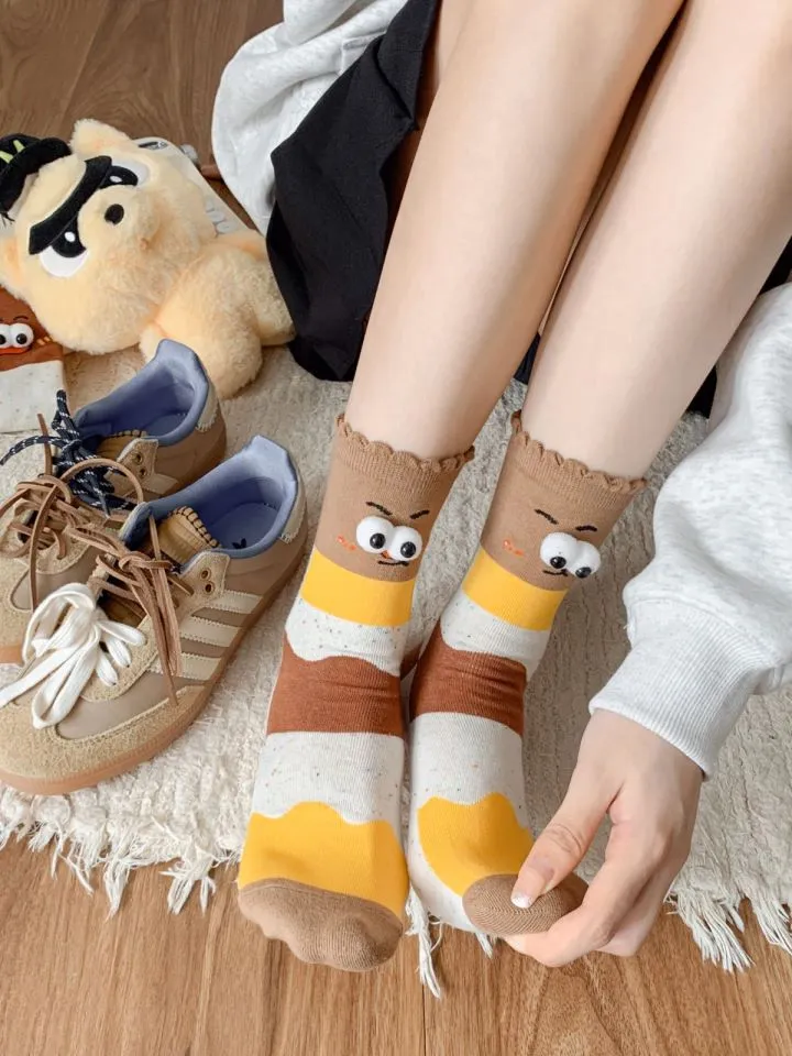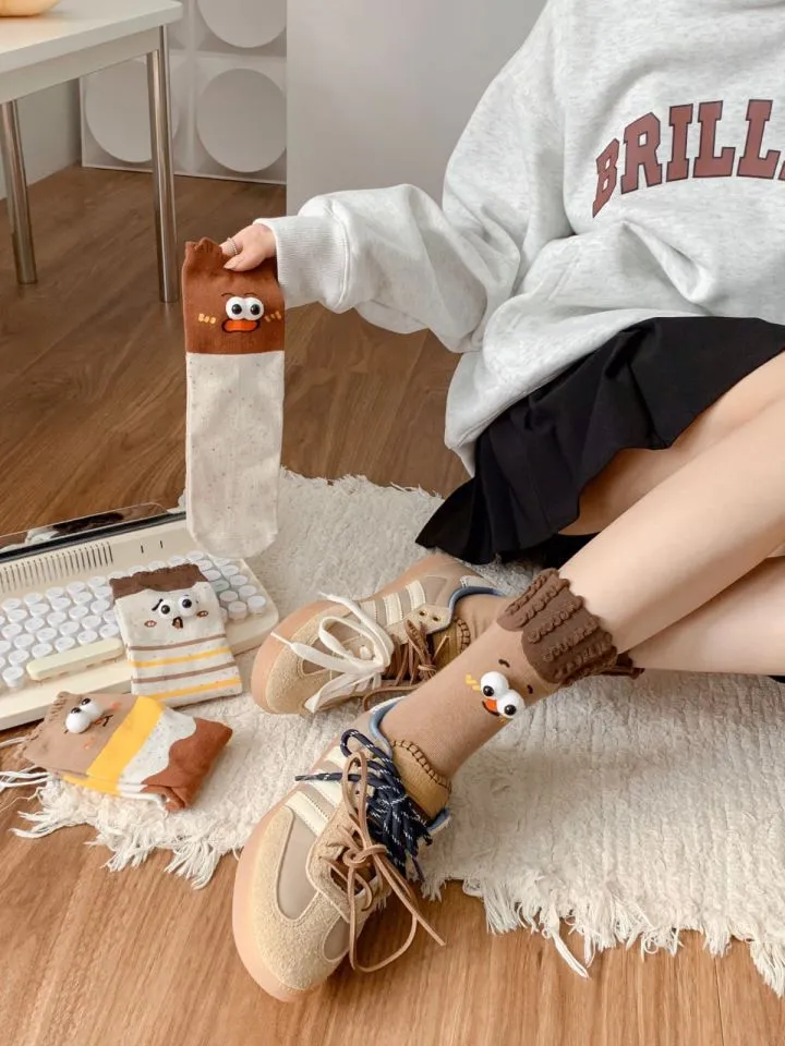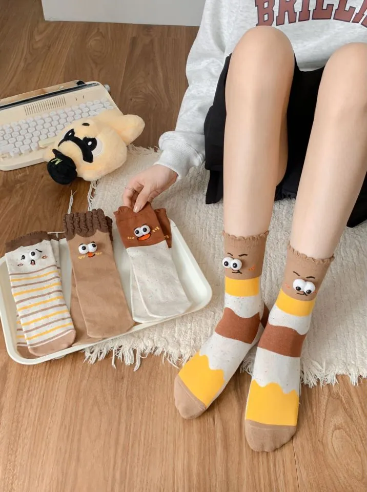 These socks aren’t just about fun—they're also incredibly versatile. The neutral colors and simple design make them easy to pair with a variety of outfits. Whether you're wearing them with shorts, skirts, or even casual pants, they can be styled in many ways, allowing you to show off your playful side without compromising on comfort or fashion.