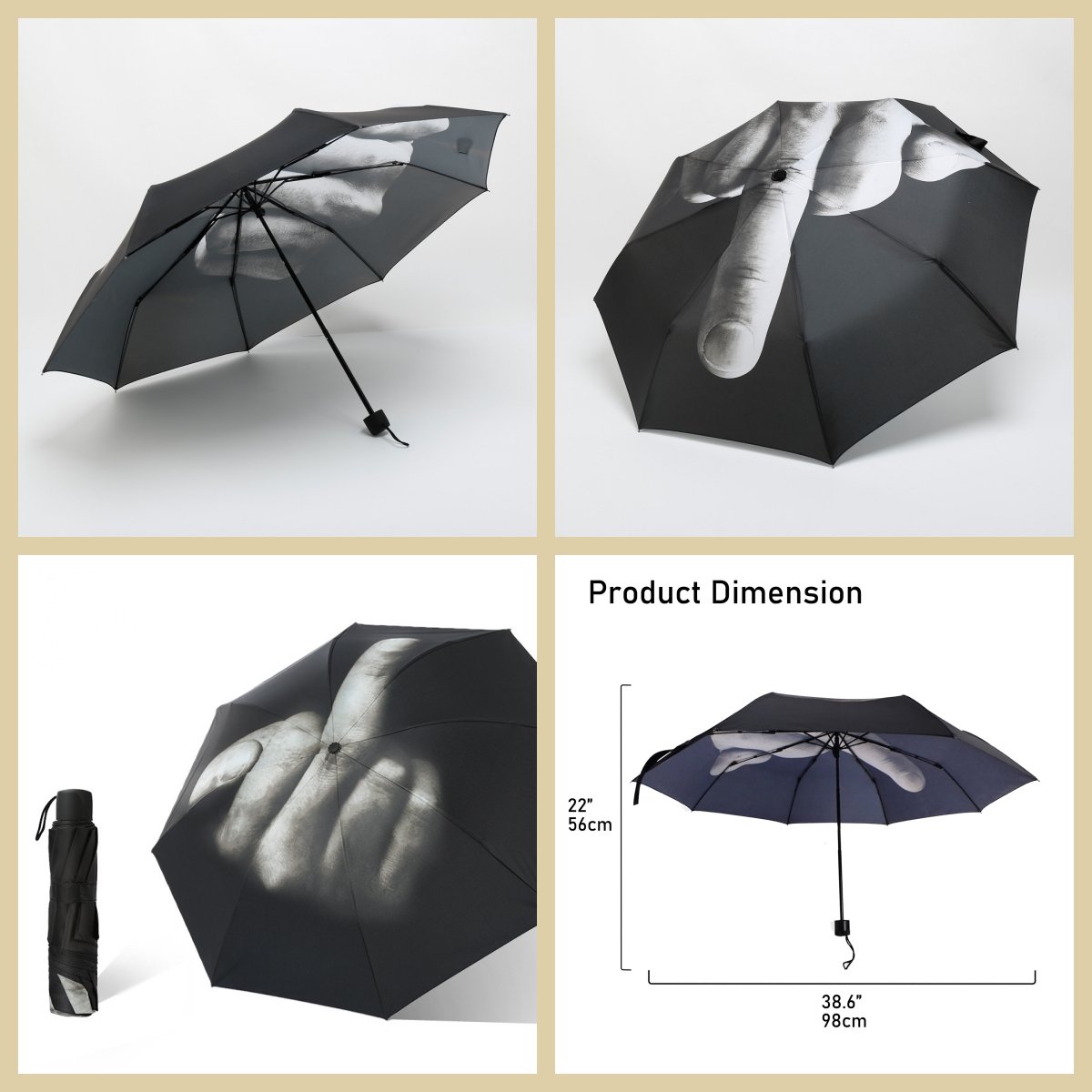 Unique Design: This is the middle finger umbrella. You will attract a lot of attention when you use it. Creative and interesting folding umbrella for your life.