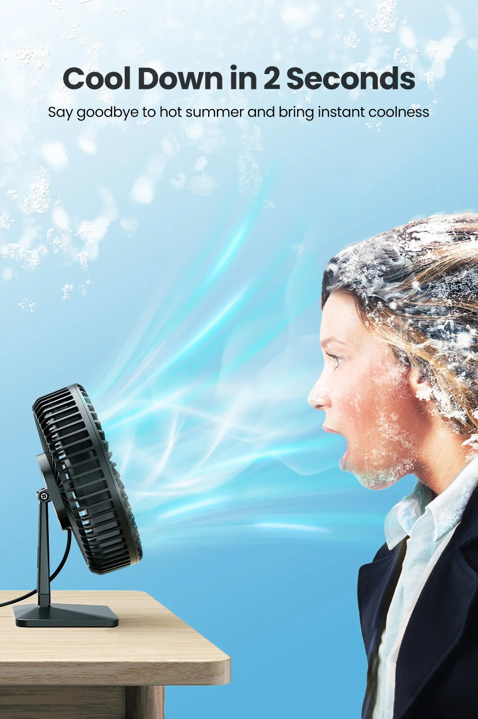 - Enjoy Cool Air: Sit back and enjoy refreshing airflow, whether at your desk, bedside, or on the move.