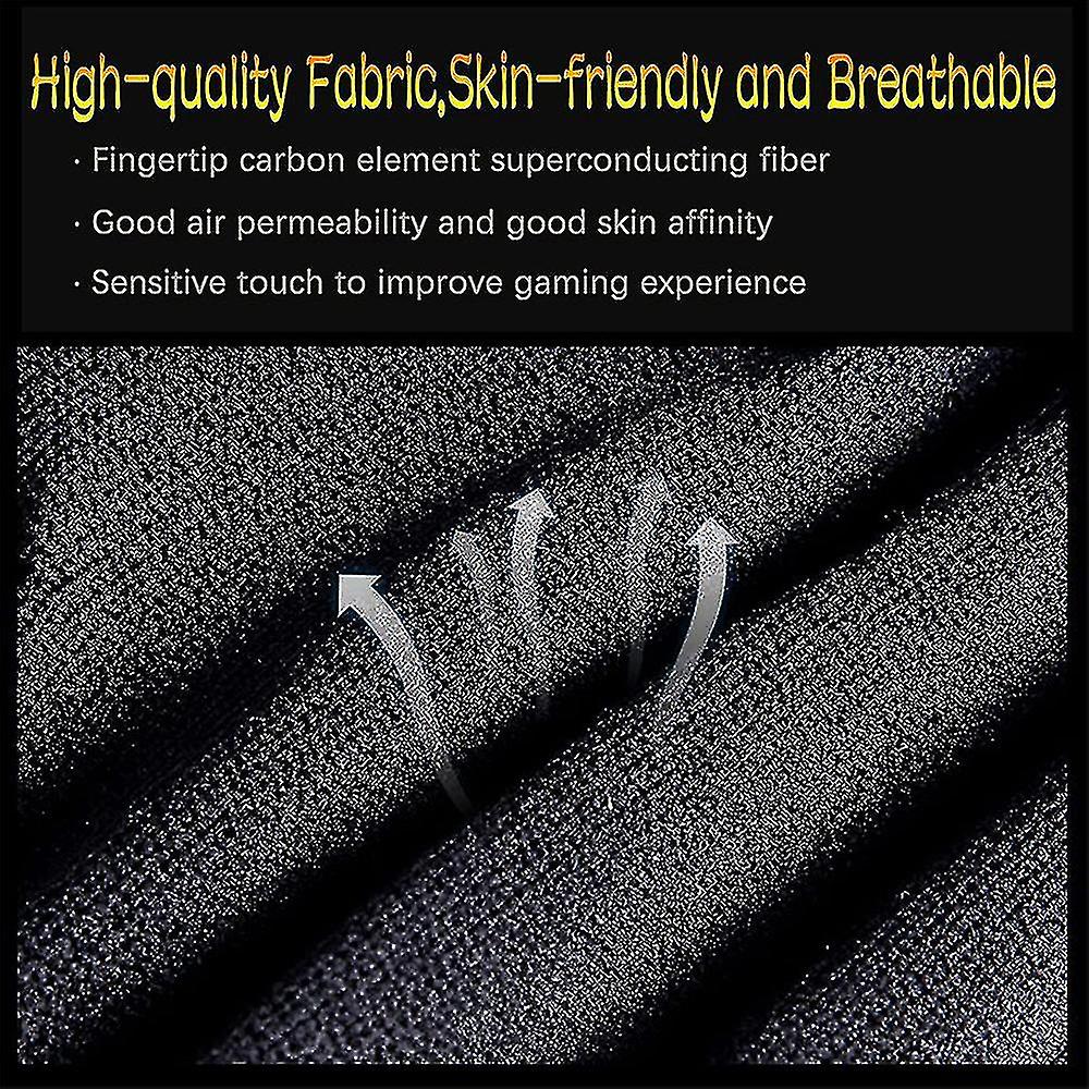 Product descriptionMaterial: carbon fiber + heating wire + spandexColor: as picture shown 1. Compatibility The mobile gaming glove supports almost all games on your Android or iOS phone, including PUBG, Rules of Survival, Knives Out and more.2. Breathability It is made of carbon fiber material, which makes you feel more comfortable when playing. If your hands are sweaty, trust it to help you improve your gaming experience, flawless aiming and shooting, and easy eating. 3. Isolate Hand Sweat This glove can protect hand sweat from screen contact, drop, oil stain, anti-slip and fingerprint protection, reduce hand sweat resistance, improve gaming experience, and prevent operator misoperation. 4. Sensitive Operations Sensitive Operations can help you improve your gaming experience and be more precise while playing games. 5. Lightweight and convenient Lightweight and compact, it is suitable for playing mobile games and can be carried anytime, anywhere. Easy to use, no tools or drivers required. It can be washed and used for a long time. Package Contains: 1 * G1 Mobile Gaming Gloves Note:1. Please allow a little error due to manual measurement. Please make sure you don't mind before bidding.2. The color may vary due to different monitors, please understand. Note:Hello, please pay attention to your delivery address when purchasing products. If your receiving information (such as: name, street, house number, doorbell/email without name, etc. is incorrect, the order will not be delivered correctly.)