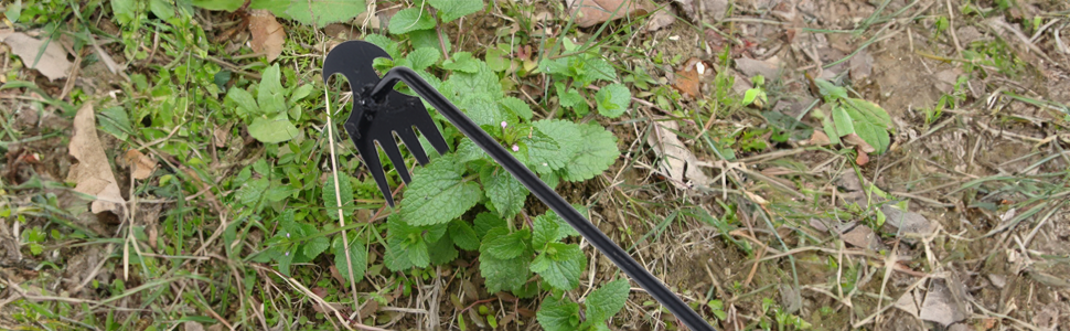- 4-Tine Weeder: The 4 tines can easily loosen the soil to the bottom of the grass、plant vegetables 、 fruits and flower pots. At the same time, you do not have to squat or get your hands dirty, just let the weed puller help with the daily basic home gardening work.
