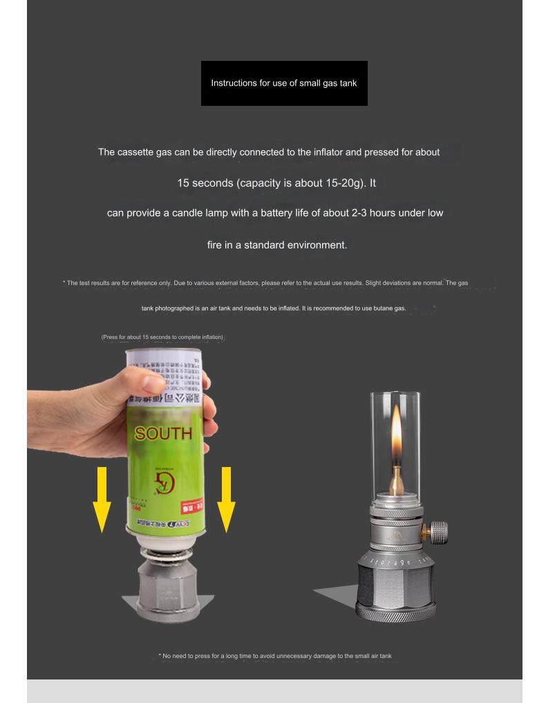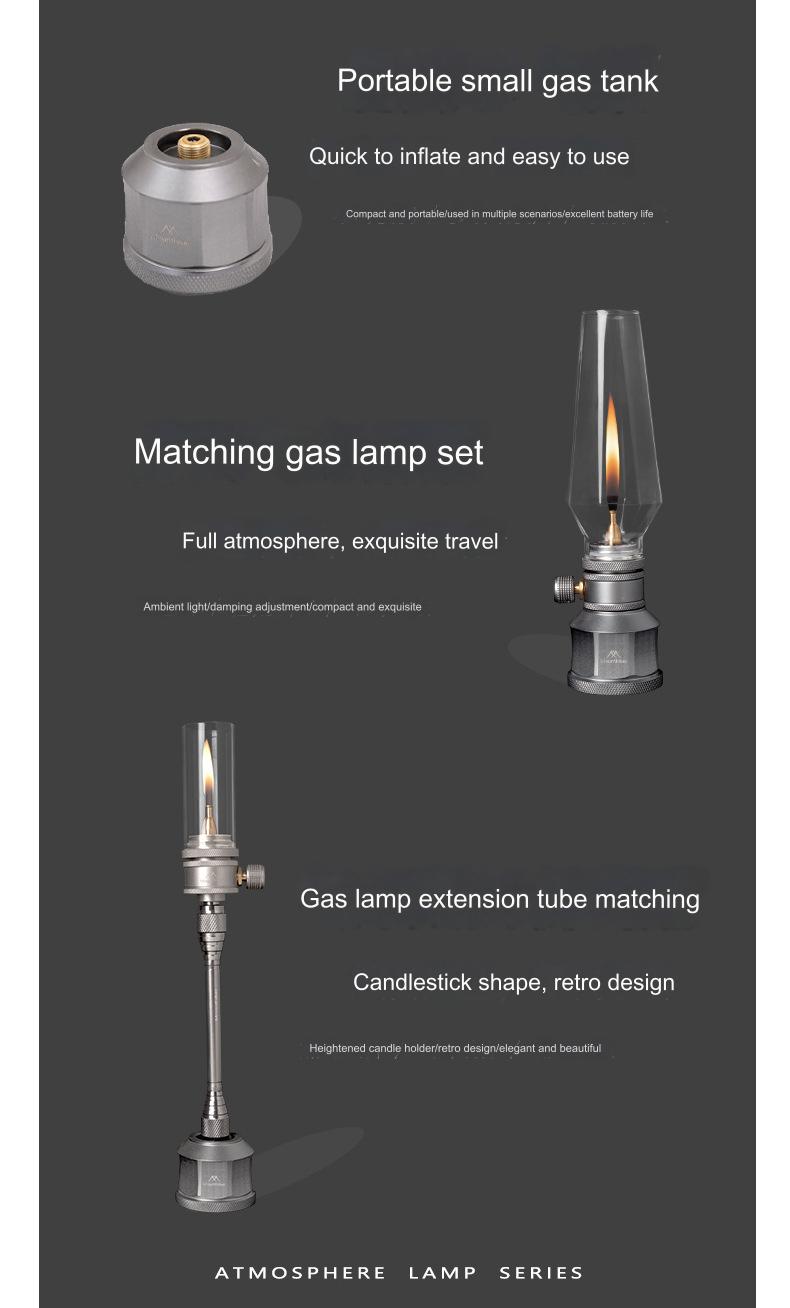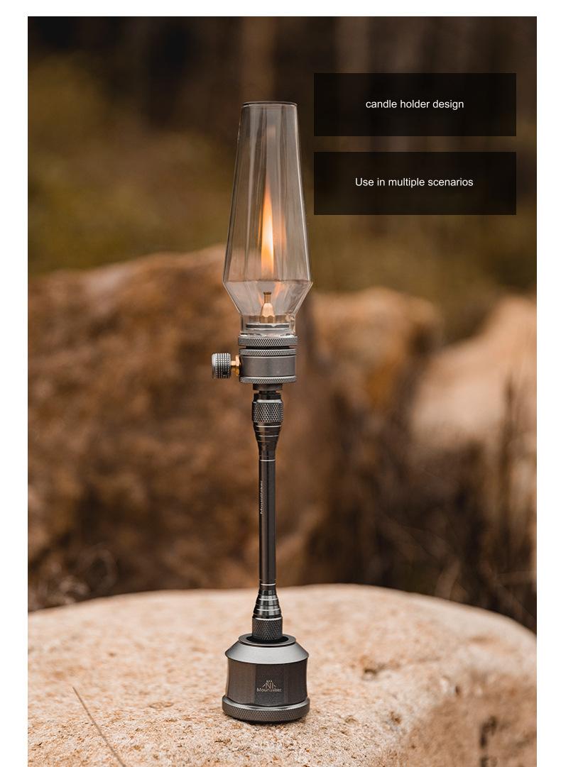 This camping gas lantern provides soft light that flickers like a candle, creating a great ambience. The light stand is adjustable.