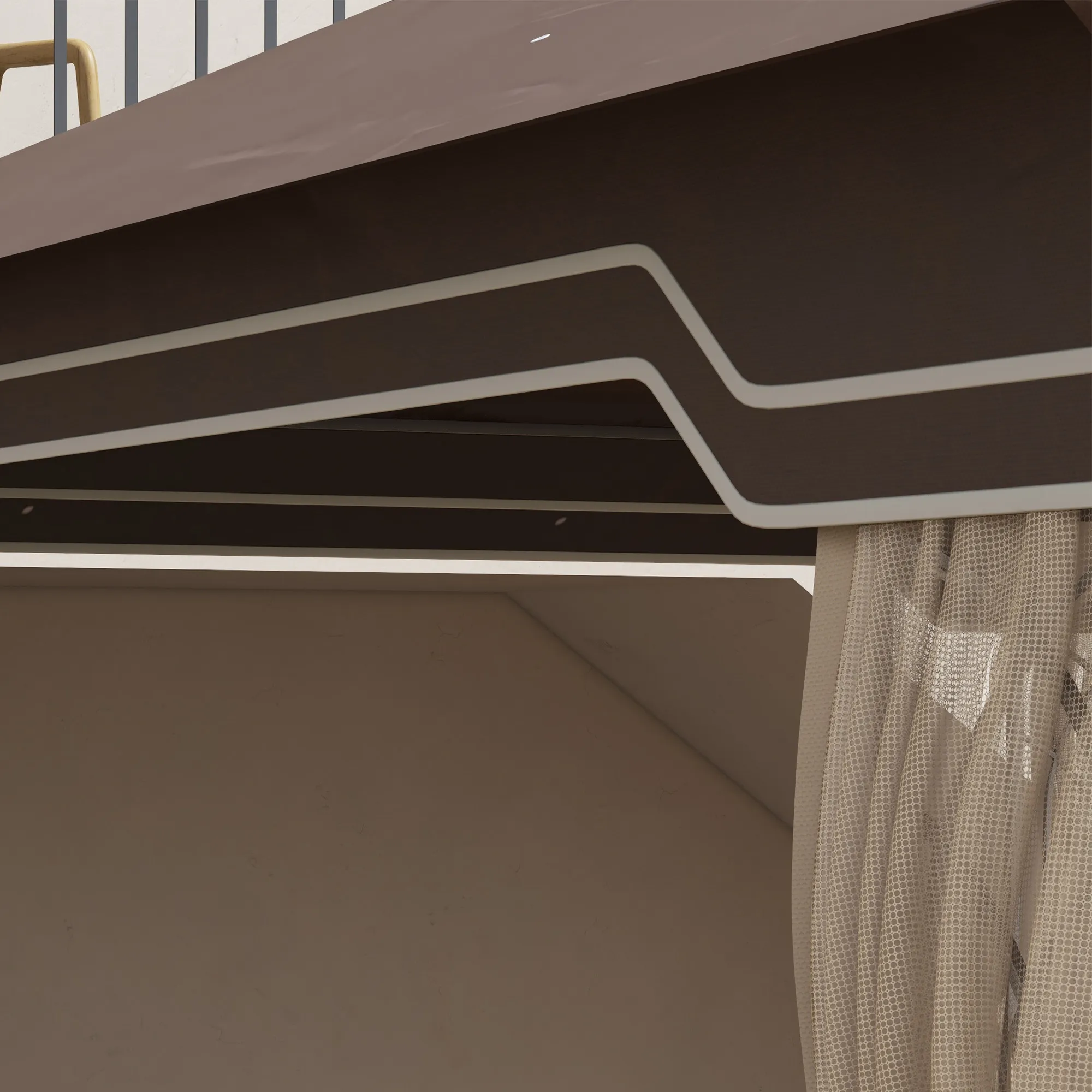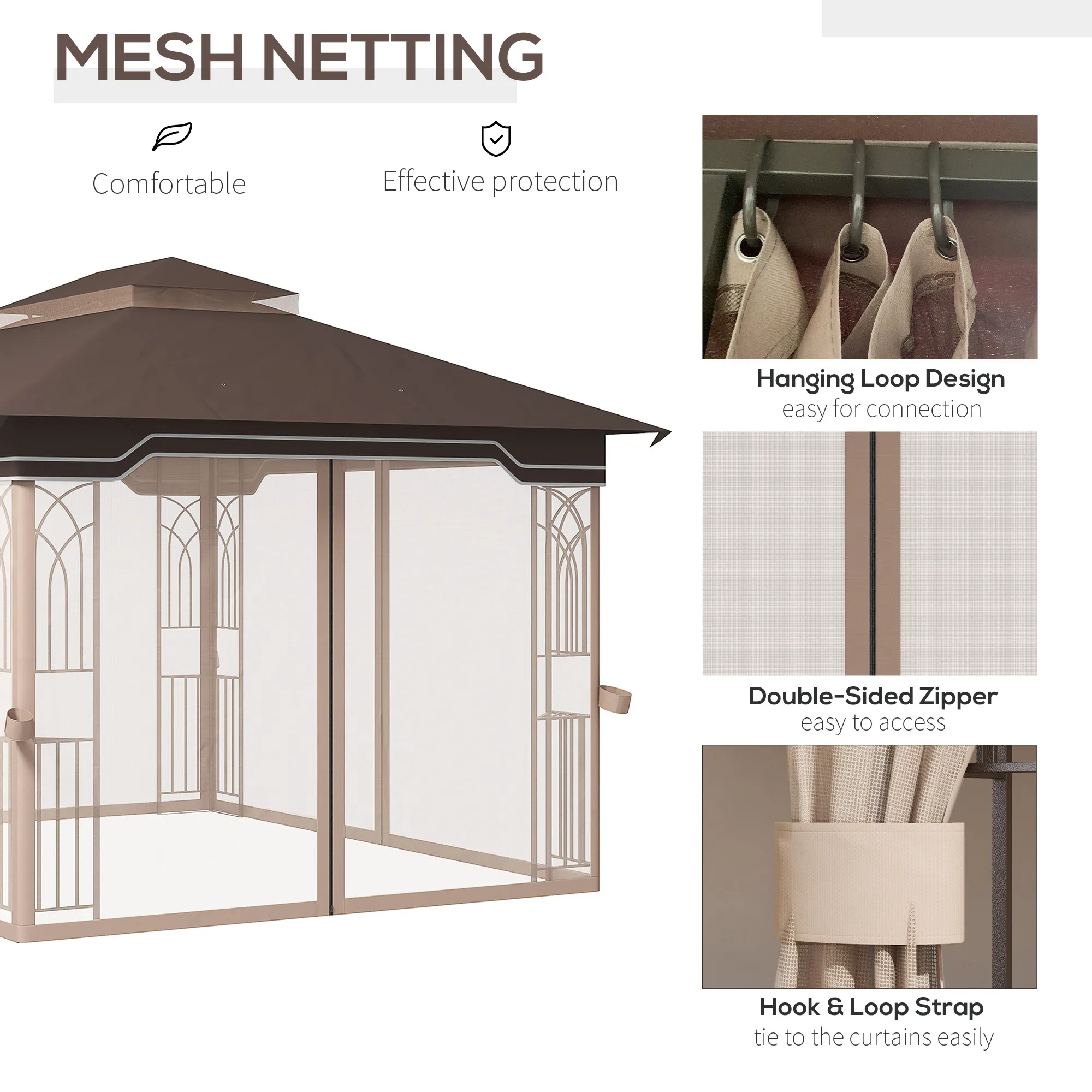 Description:Upgrade your outdoor space with the minimalist charm of our backyard canopy. Outsunny has a patio gazebo that has an aluminum frame to withstand water, sets up fast, and is reinforced with a steel support structure. Its canopy top is made of UV-protected polyester, so you can stop sunburns and keep cool without worrying about color fading. Outdoor outings don't have to bite. Use the privacy curtains to avoid glare, gusts, and rude winged intruders. Get out, get comfy, get Outsunny. Features: - Tall and spacious design, houses a crowd without feeling crowded - Water-safe aluminum frame combined with steel structure for strength - Designed with a vented roof for proper airflow inside - Curtains create privacy when wanted, attached with hook and loop straps - Equipped with eight ground nails for more stability - Assembly required Specification: - Color: Brown - Materials: Aluminum, Steel, Polyester - Overall Dimensions: 13.1' L x 9.8' W x 8.5' H - Eaves Height: 6.2' H - Column Spacing: 11.2' L x 7.9' W - Item Label: 84C-322V01BN - NOTE: Not recommended for use in extreme weather conditions Package Includes: - 1 x Gazebo - 8 x Ground Stake - 1 x Manual Upgrade your outdoor space with the minimalist charm of our backyard canopy. Features: - Tall and spacious design, houses a crowd without feeling crowded - Water-safe aluminum frame combined with steel structure for strength - Designed with a vented roof for proper airflow inside - Curtains create privacy when wanted, attached with hook and loop straps - Equipped with eight ground nails for more stability - Assembly required Specification: - Color: Khaki - Materials: Aluminum, Steel, Polyester - Overall Dimensions: 9.7' L x 9.7' W x 8.5' H - Eaves Height: 6.2' H - Column Spacing: 7.9' L x 7.9' W - Item Label: 84C-322BG - NOTE: Not recommended for use in extreme weather conditions Package Includes: - 1 x Gazebo - 8 x Ground Stake - 1 x Manual Upgrade your outdoor space with the minimalist charm of our backyard canopy. Features: - Tall and spacious design, houses a crowd without feeling crowded - Water-safe aluminum frame combined with steel structure for strength - Designed with a vented roof for proper airflow inside - Curtains create privacy when wanted, attached with hook and loop straps - Equipped with eight ground nails for more stability - Assembly required Specification: - Color: Wine Red - Materials: Aluminum, Steel, Polyester - Overall Dimensions: 9.7' L x 9.7' W x 8.5' H - Eaves Height: 6.2' H - Column Spacing: 7.9' L x 7.9' W - Item Label: 84C-322WR - NOTE: Not recommended for use in extreme weather conditions Package Includes: - 1 x Gazebo - 8 x Ground Stake - 1 x Manual A spacious 10' x 12' Outsunny cabana can keep you cool and complete any outdoor space. The mesh nettings zip on and off to provide a breathable barrier that lets the good in and keeps the bad out. The double vented roof keeps off rain and harmful UV while letting in a soft, gentle breeze. The strong, unwavering steel features four beautifully stylized corner shelves for your dining, drink, décor desires. Create your own oasis with Outsunny. Features: - Fits a crowd without feeling crowded - Double-vented roof for safety in the wind and a soft breeze - 8 rooftop drainage holes to stop water accumulation - The polyester is PU-coated for protection against UV - Removable netting with hook & loop design - Shelves provide storage and display space - Sturdy solid steel frame - 8 support stakes to mount it to soft ground - Assembly required Specification: - Color: Coffee Brown, Beige, Light Brown - Material: Steel, Polyester - Overall Dimension: 12' L x 9.8' W x 8.9' H - Eaves Height: 6.2' H - Column Spacing: 8.7' L x 6.6' W - Item Label: 84C-320V01BN - Not recommended for use in extreme weather conditions Package Includes: - 1 x gazebo - 8 x ground stakes - 1 x manual.