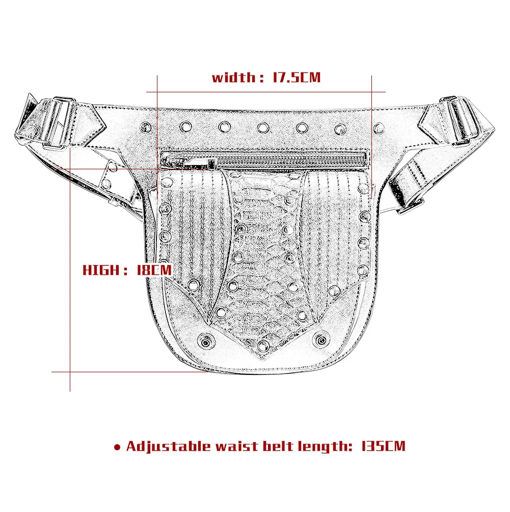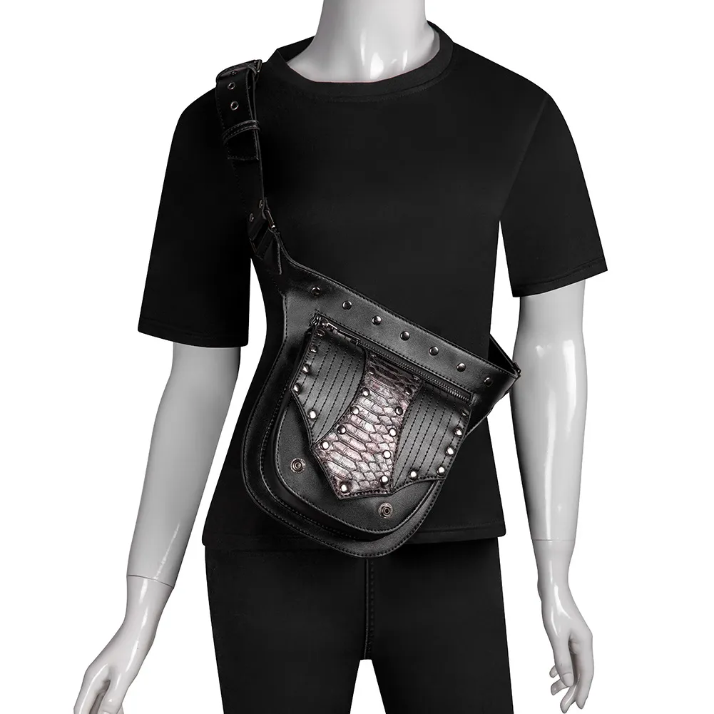 This bag is incredibly versatile, designed to be worn in several ways. Whether you want to carry it as a shoulder bag, a waist pack, or even as a leg bag, the adjustable straps ensure comfort and convenience in all styles. This multi-purpose feature makes it ideal for various occasions, from a casual outing to a steampunk convention or a gothic event.