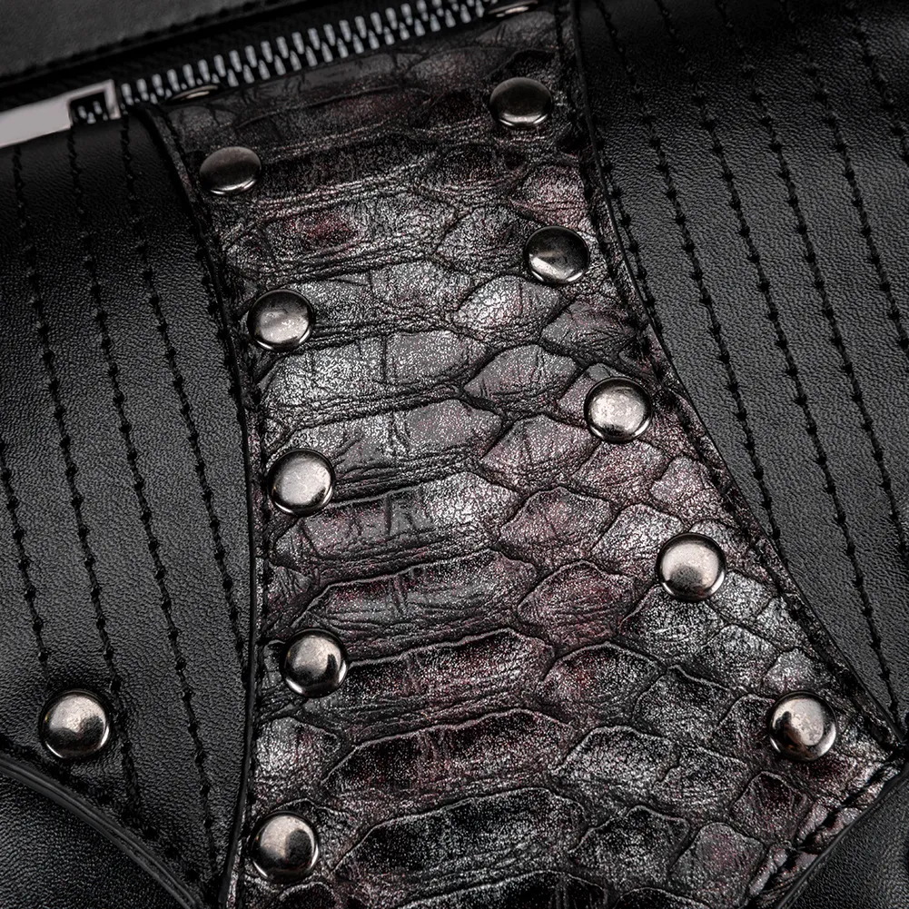 The Victorian influence in the design of this bag adds a gothic flair that complements its industrial and steampunk elements. It blends romantic Victorian elements with the boldness of gothic fashion, making it a unique accessory that can complement any gothic or punk-inspired outfit.