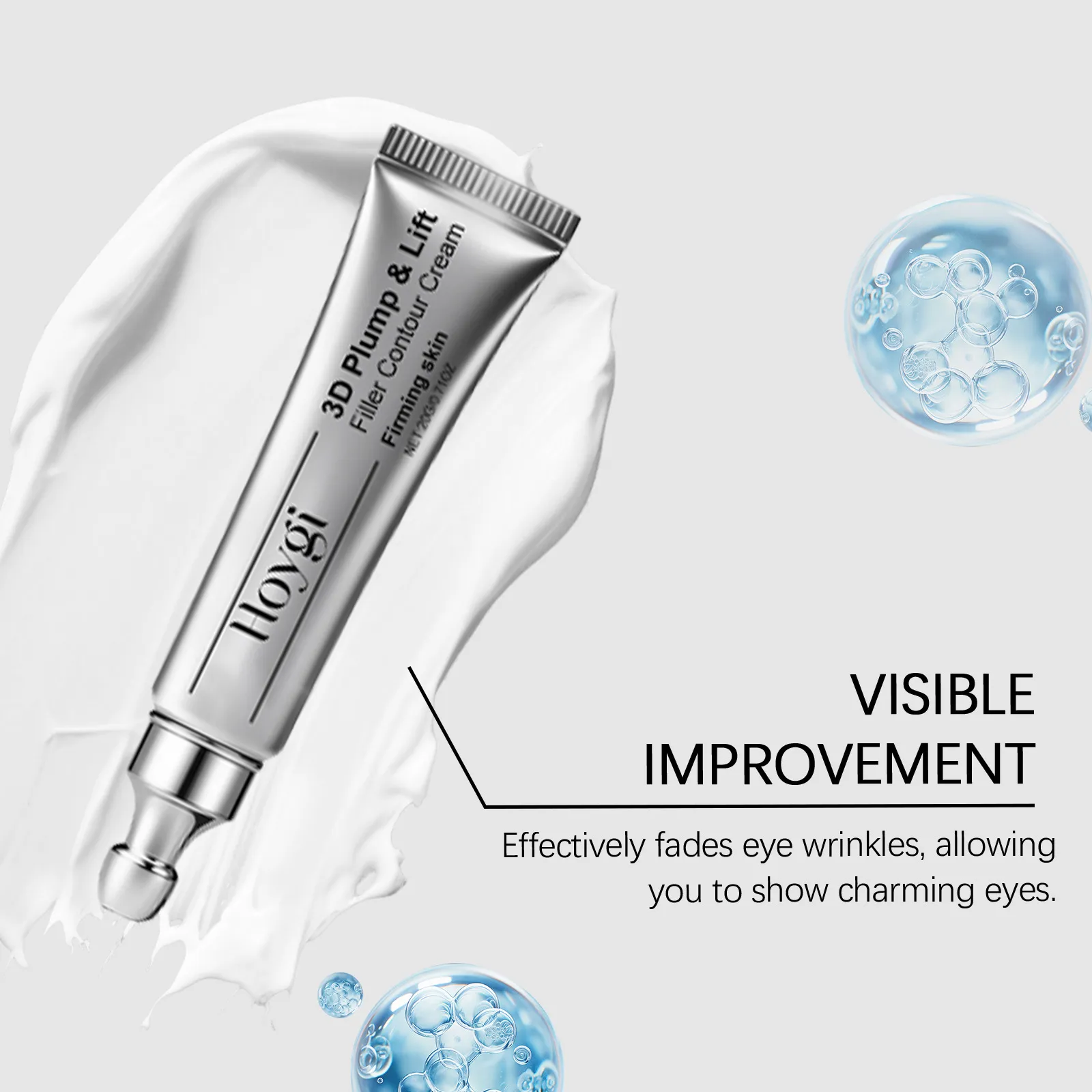 The cream stimulates collagen production, improving skin elasticity and firmness. This action helps to lift the skin around your eyes, reducing sagging and smoothing the texture of the skin.