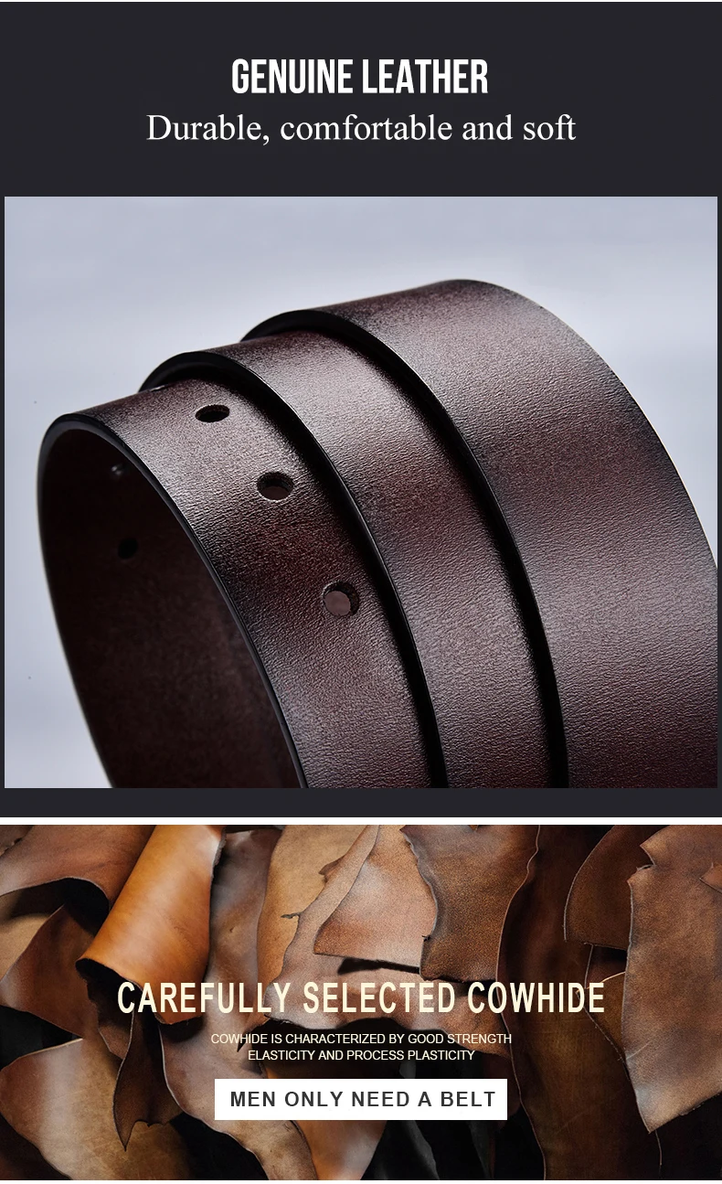 Unlike cheap, stiff belts, a genuine leather belt offers better comfort and flexibility. The softness of the cowskin leather molds to your body, creating a more comfortable fit that moves with you throughout the day.
