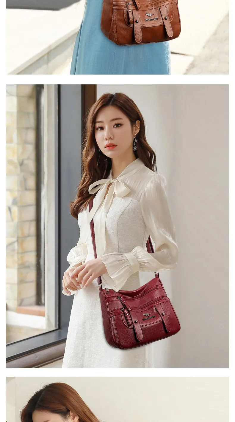 Genuine Leather Soft Multilayer Fashion Large Capacity Simple Shoulder Crossbody Bag