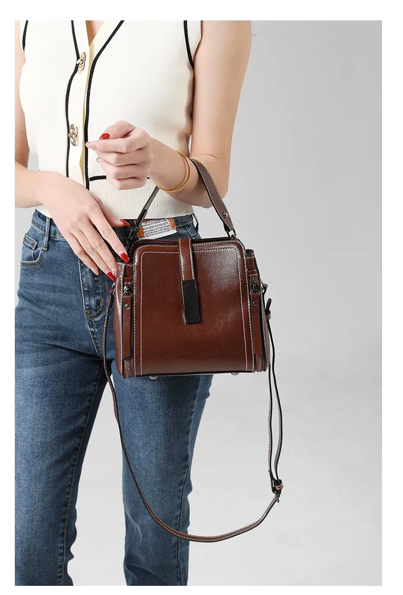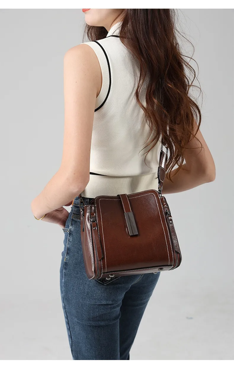 Genuine Leather Women's Fashion Portable Shoulder Commute Crossbody Bag