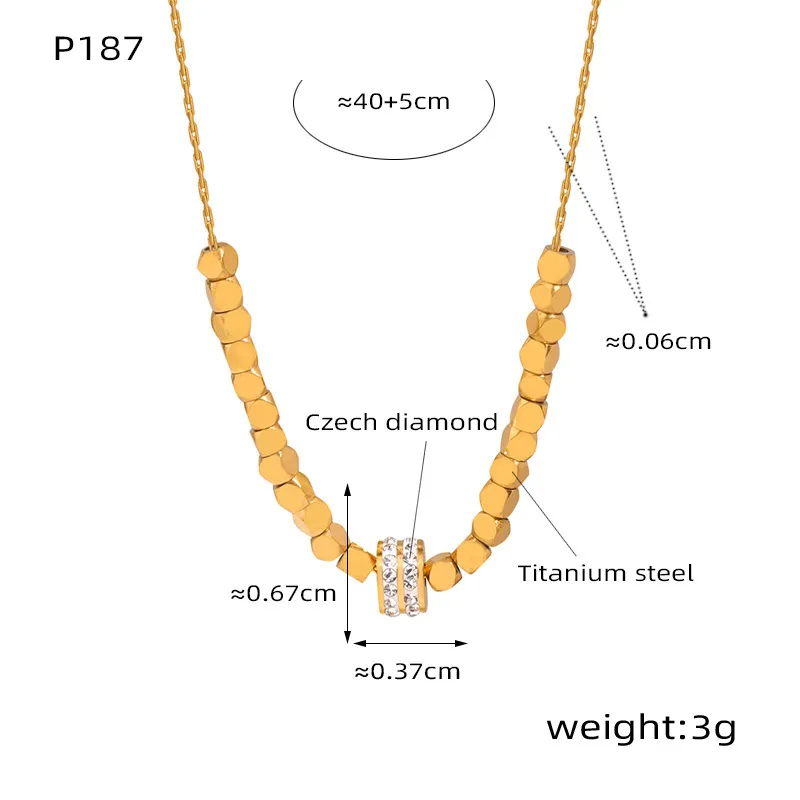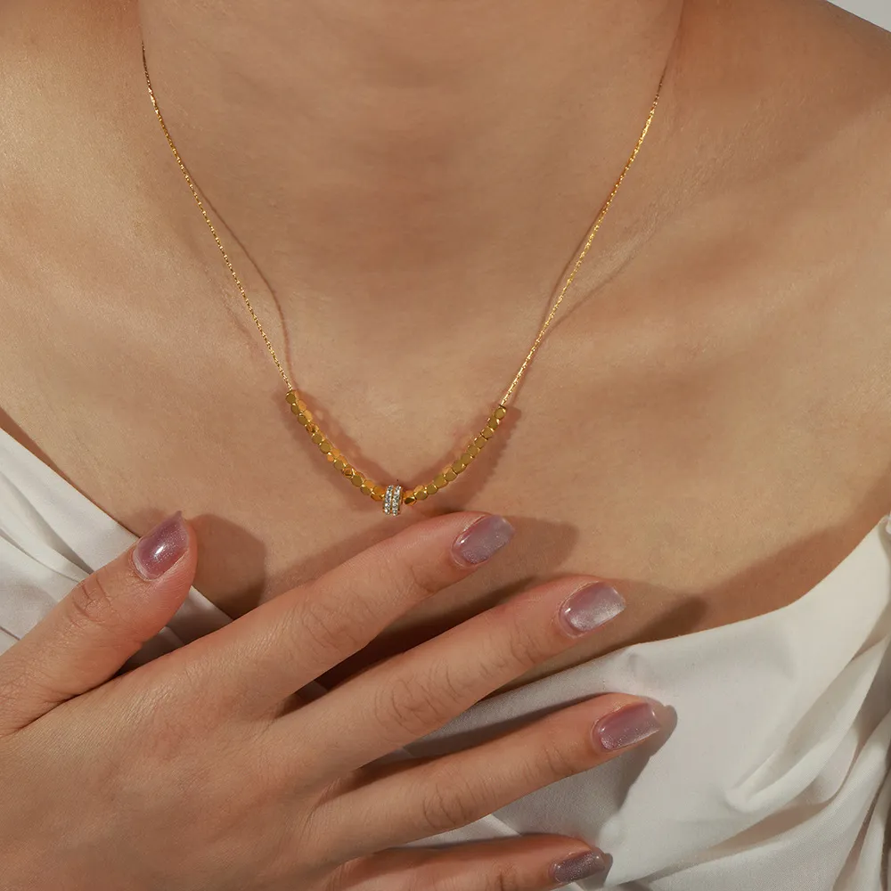 Geometric Design Round Zircon-inlaid Pendant Titanium Steel Gold-plated Cube Sugar Necklace