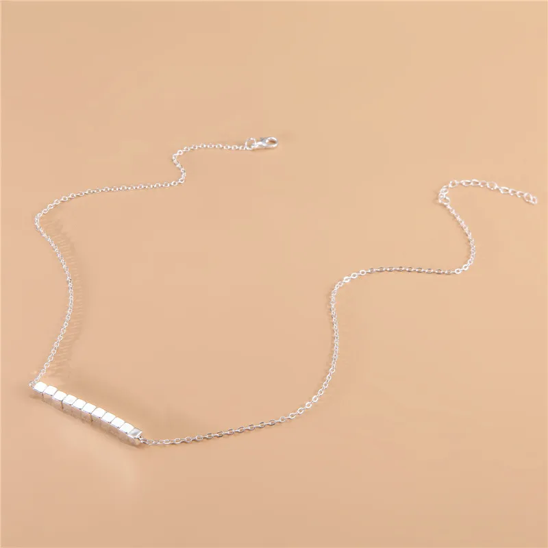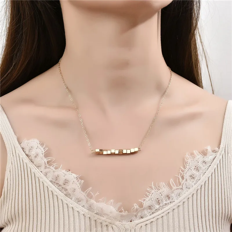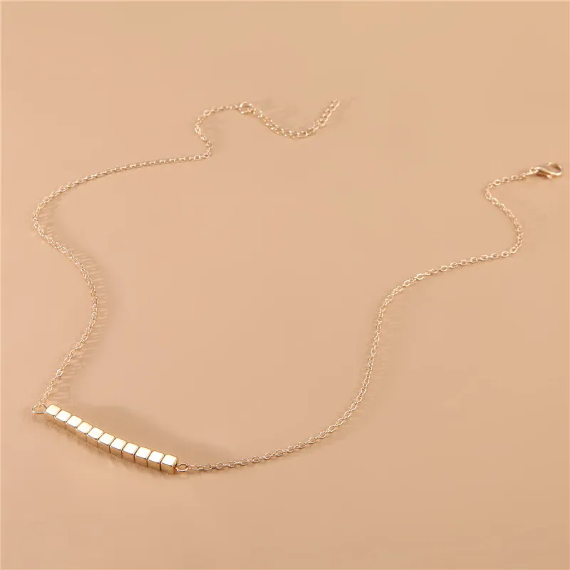 Geometric Square Block Beaded Pendant Necklace