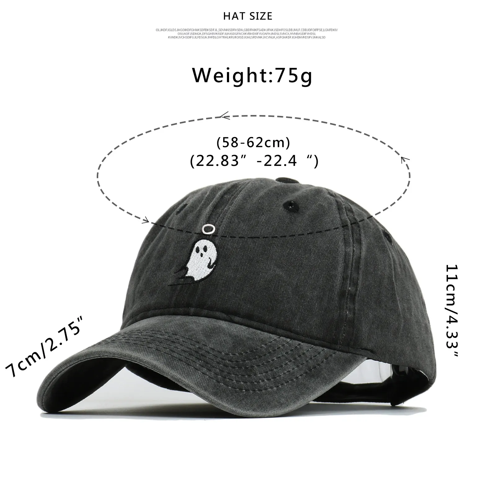 Product Description: Ghost Embroidered Baseball Cap – Stylish and Comfortable Washed Cotton Cap for Everyday Wear