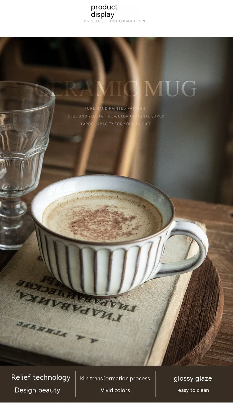 The relief design is both decorative and tactile, offering a unique experience as you hold and admire the mug. This artistic detailing adds a vintage aesthetic to any setting, whether casual or formal.