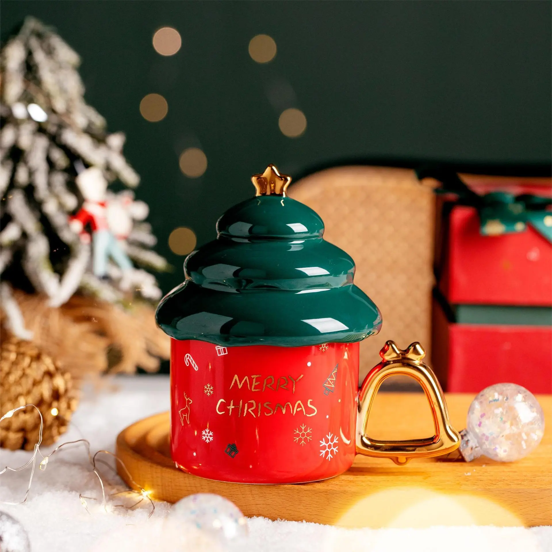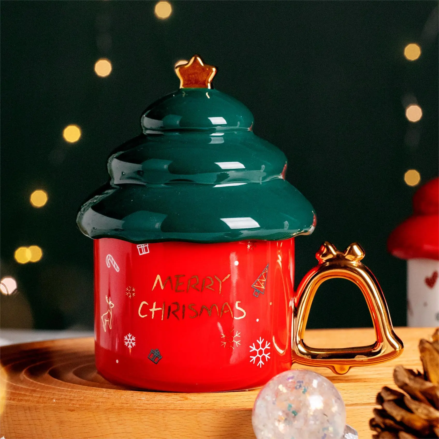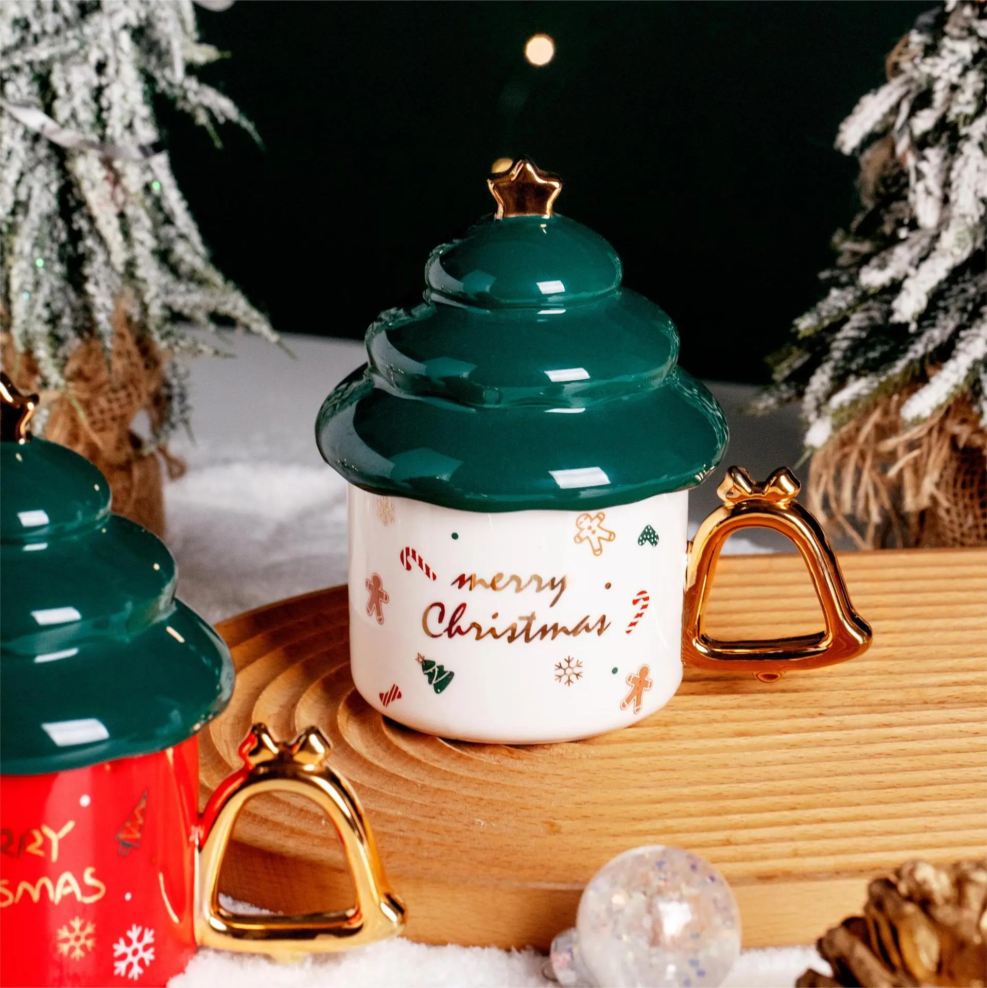 Gilt Christmas Tree Shaped Ceramic Mug With Lid