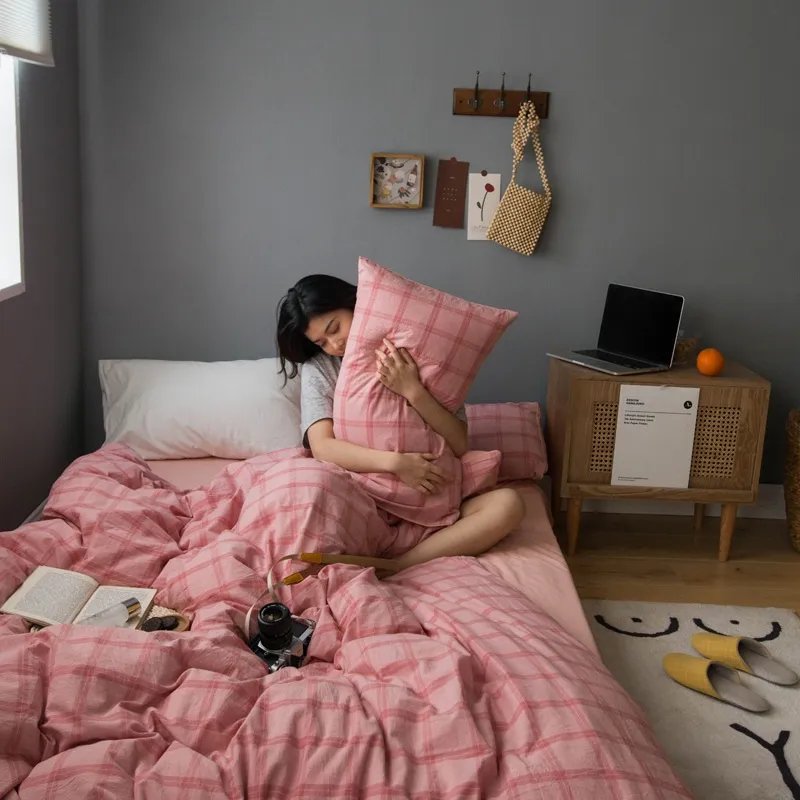 Classic Gingham Pattern: The iconic gingham check pattern adds a timeless, stylish touch to your bedroom, blending easily