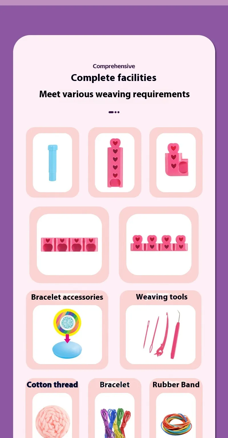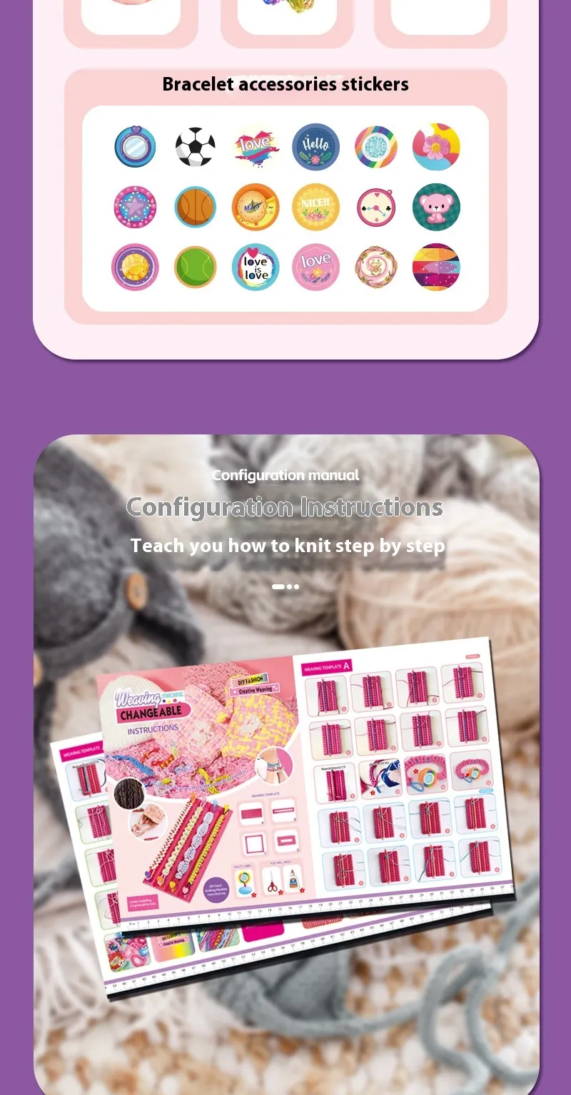 young girls. It provides a structured and easy way to knit and weave bracelets using colorful threads and accessories.