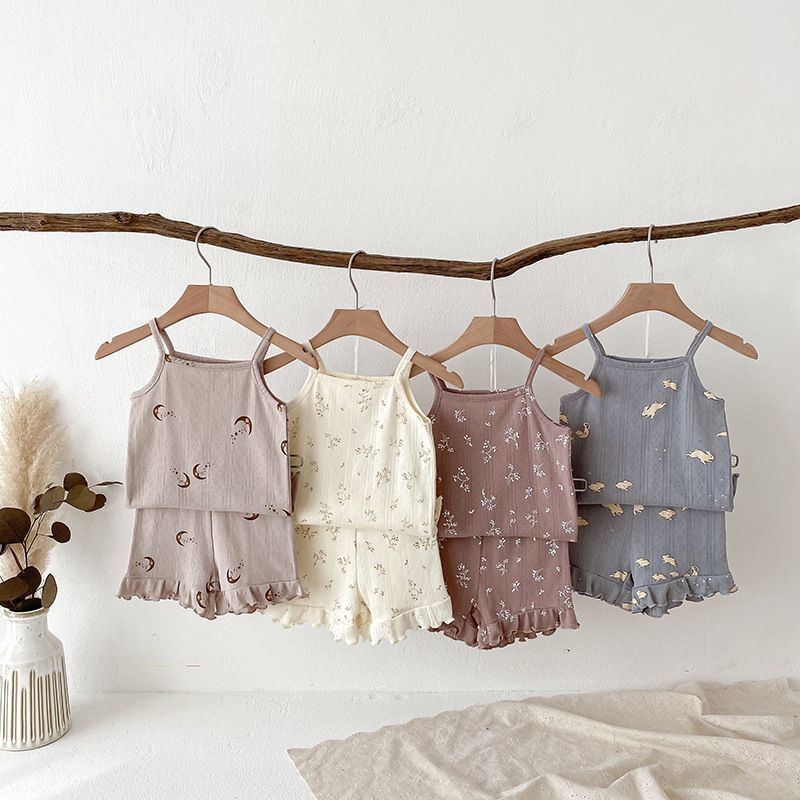 This two-piece set features a simple yet stylish design that is both practical and cute. The camisole top provides a flattering fit, while the elastic waistband on the shorts ensures a secure and comfortable fit without being too tight. Available in a variety of colors, this set is easy to mix and match with other clothing, making it perfect for everyday wear. Whether your child is playing at home, having a nap, or enjoying a family movie night, this set is an ideal choice for casual wear.