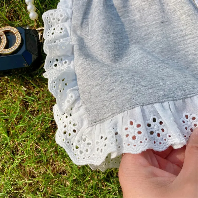 Girls' Cotton Summer Short Sleeve Shorts Suit