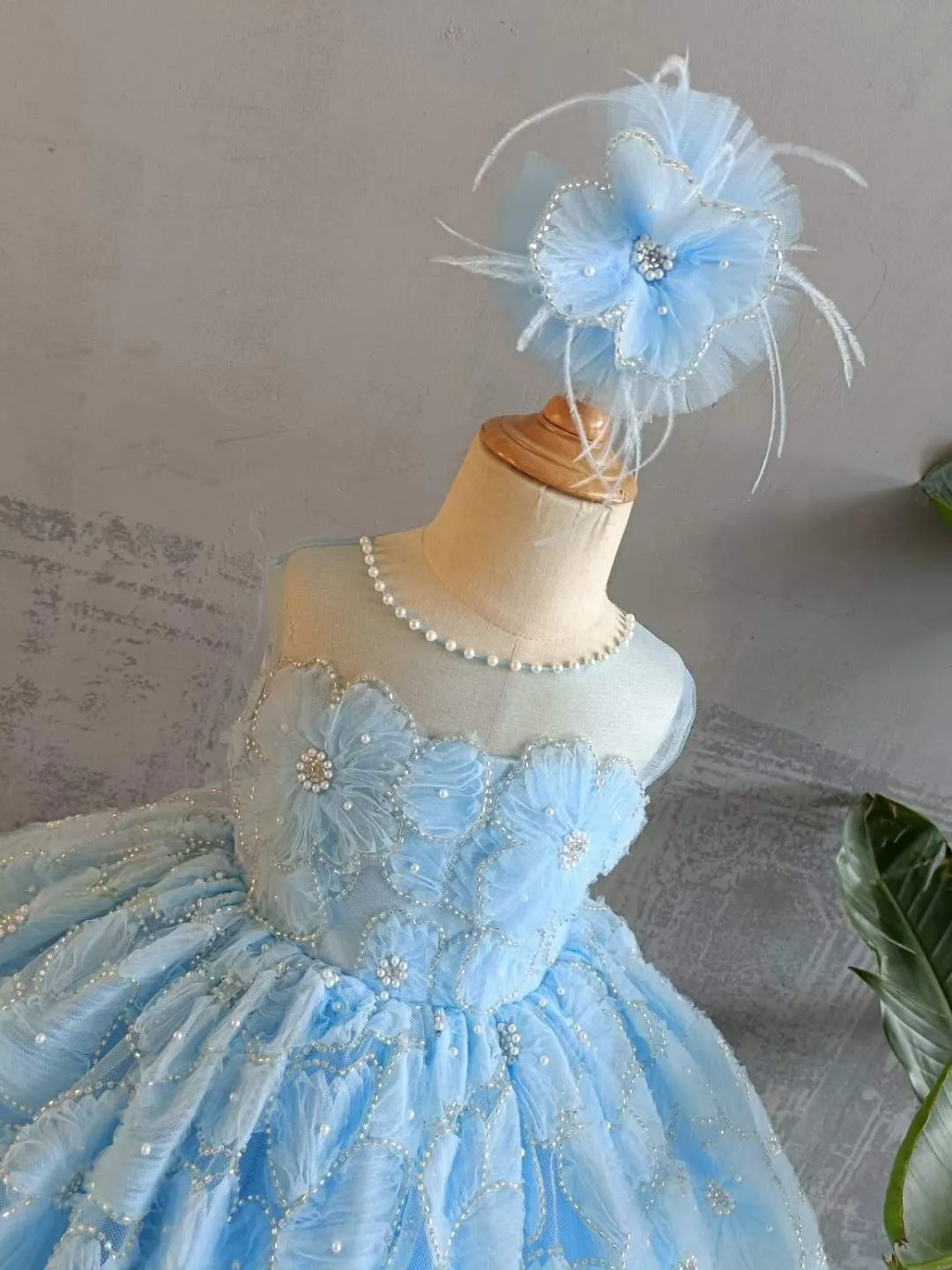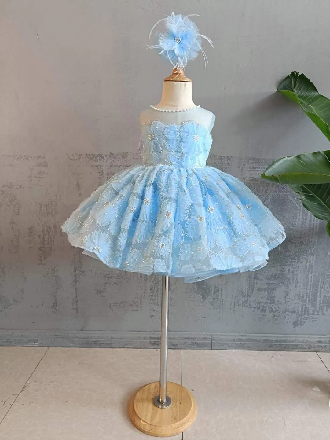 👗 Girl’s Blue Super Fairy Pettiskirt – Piano Performance Dress