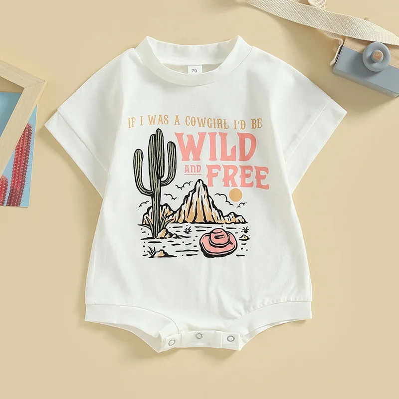Girls' Fashion Cactus Print Round Neck Jumpsuit - Stylish and Comfortable Playwear