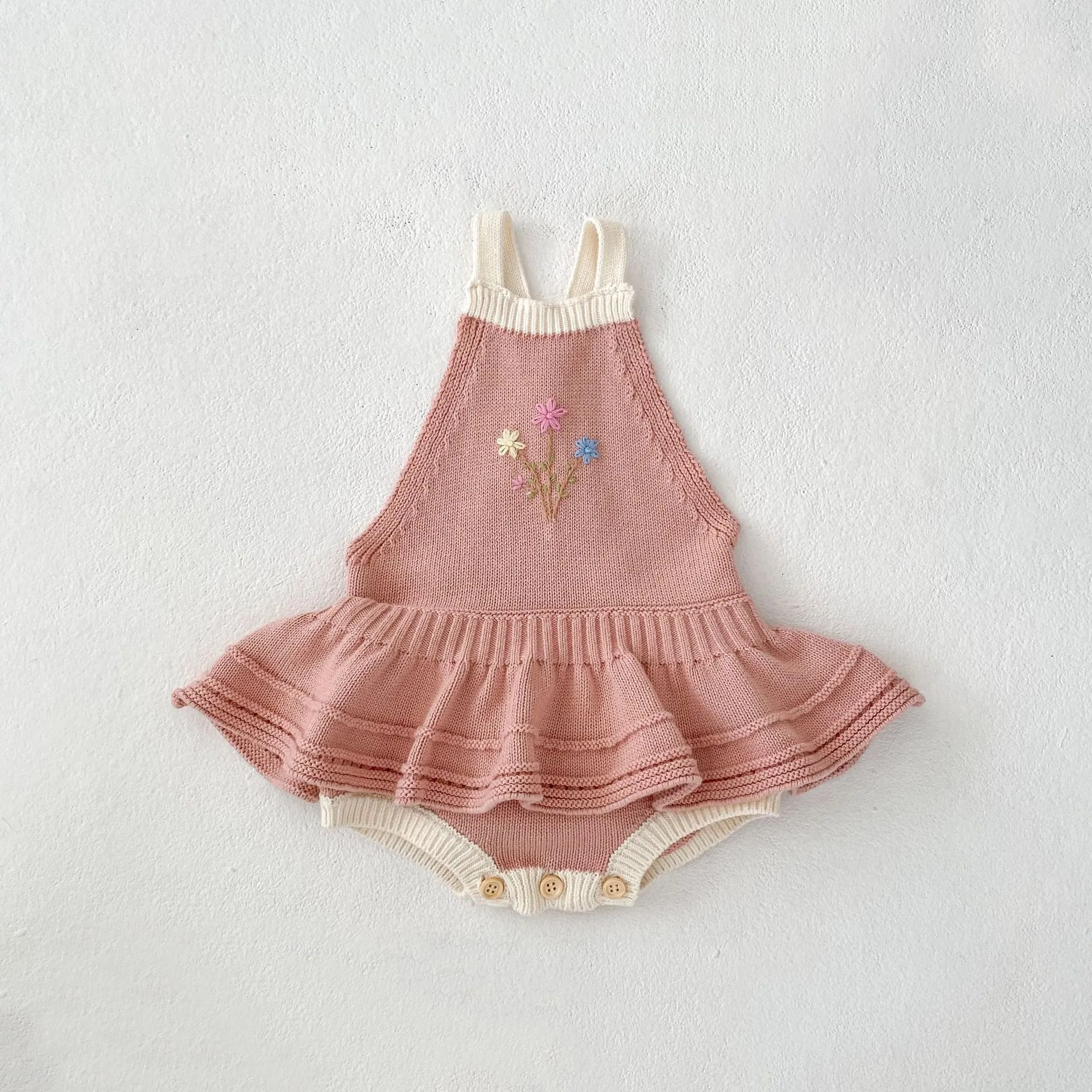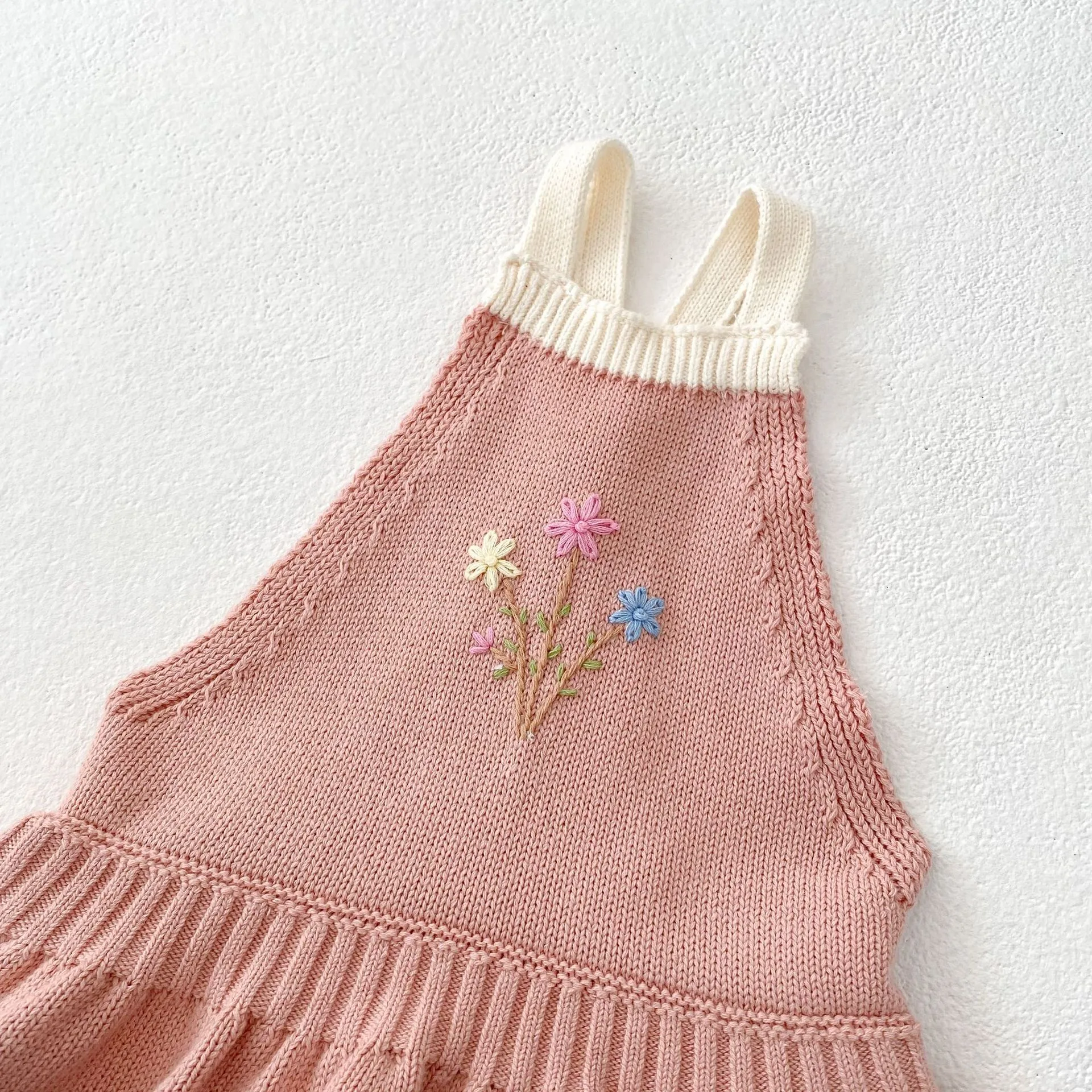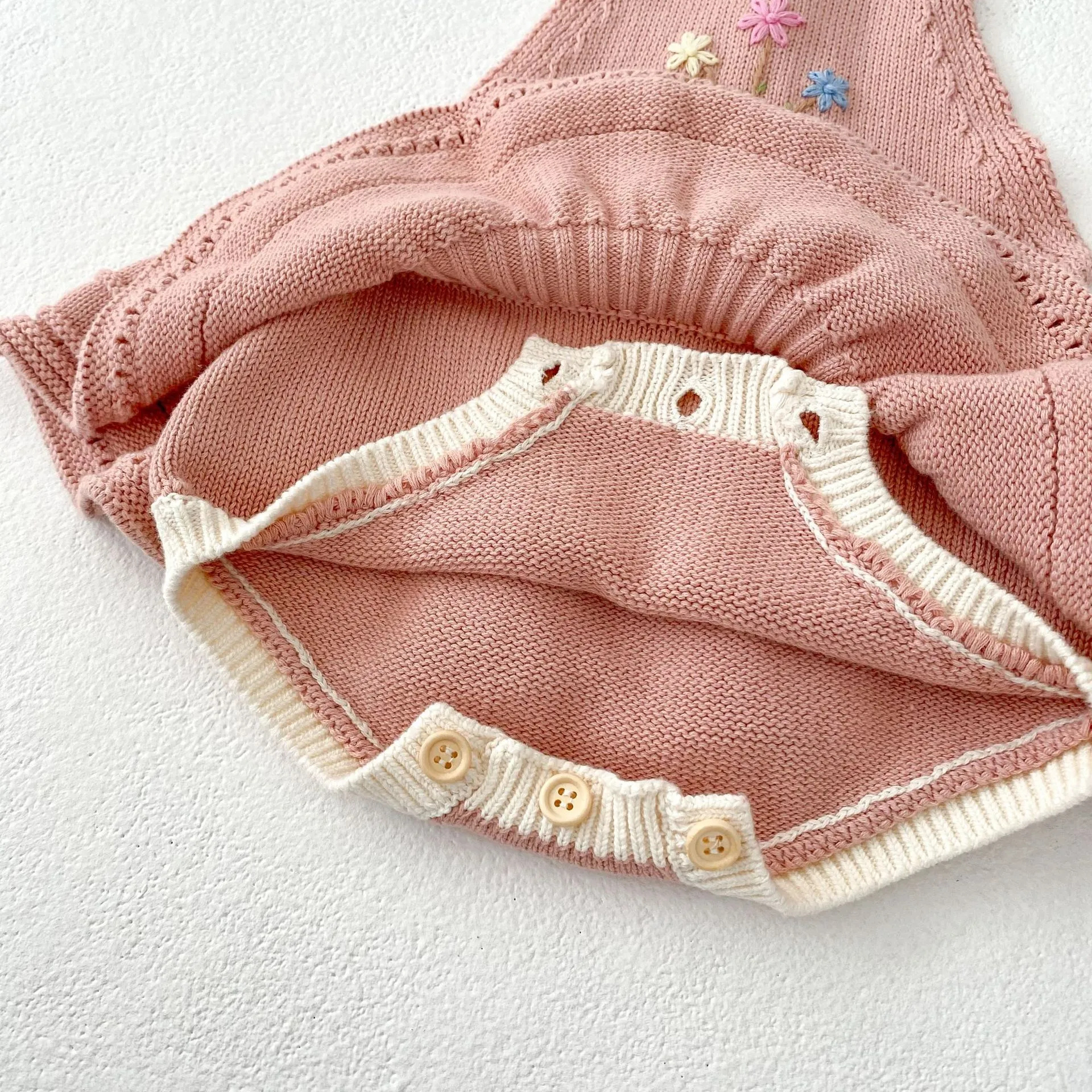 Girls' Fashion Personalized Embroidered Knitted Jumpsuit