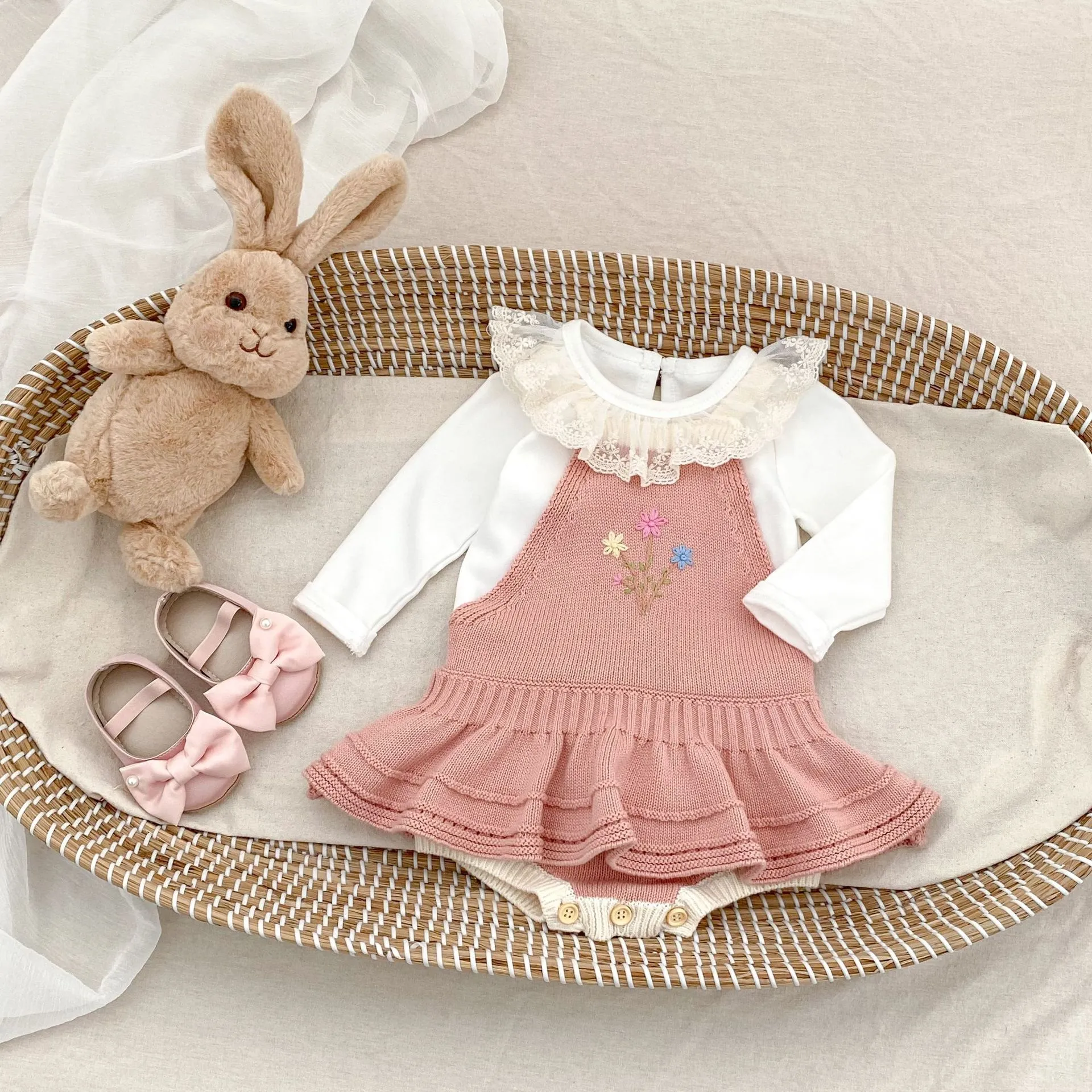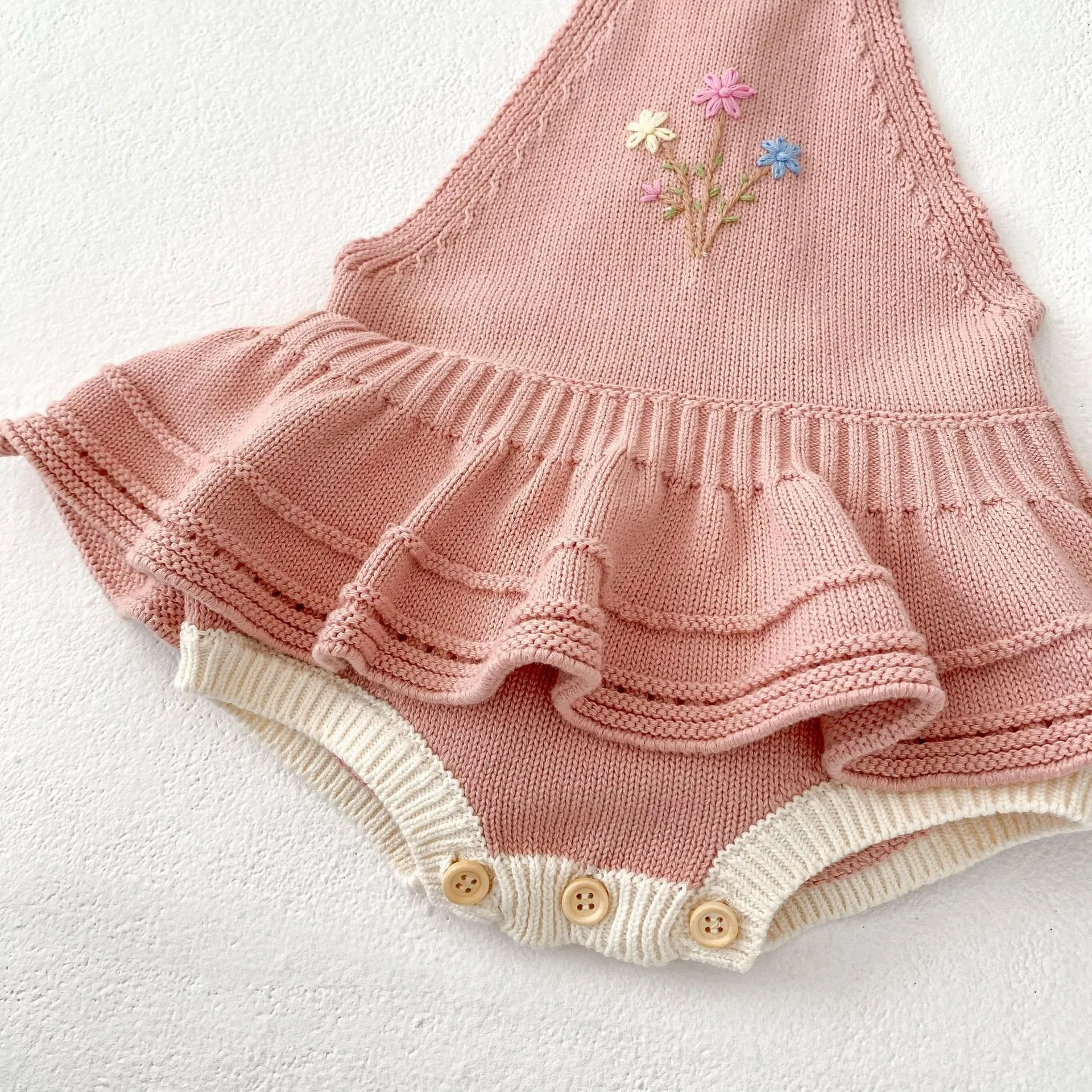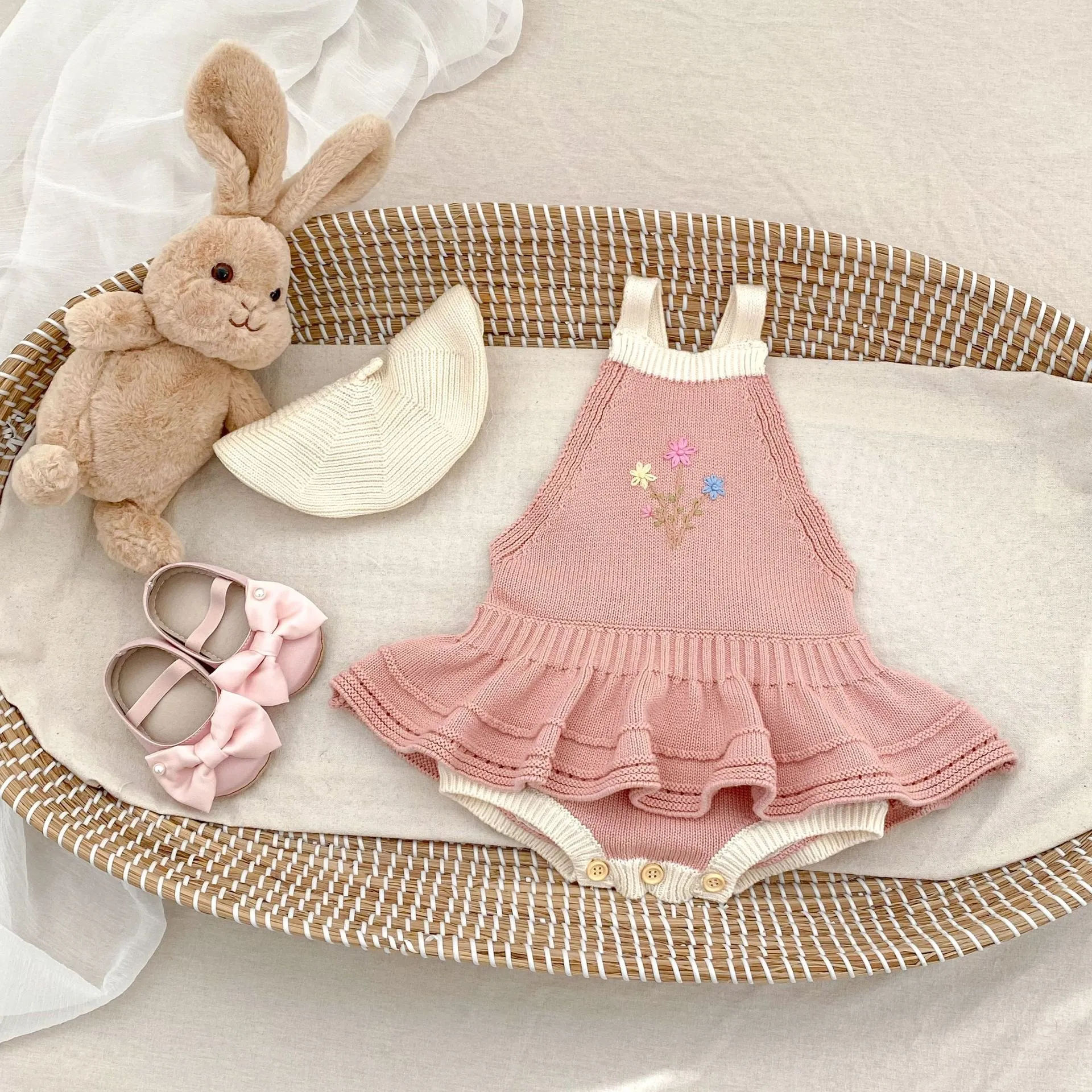 Girls' Fashion Personalized Embroidered Knitted Jumpsuit