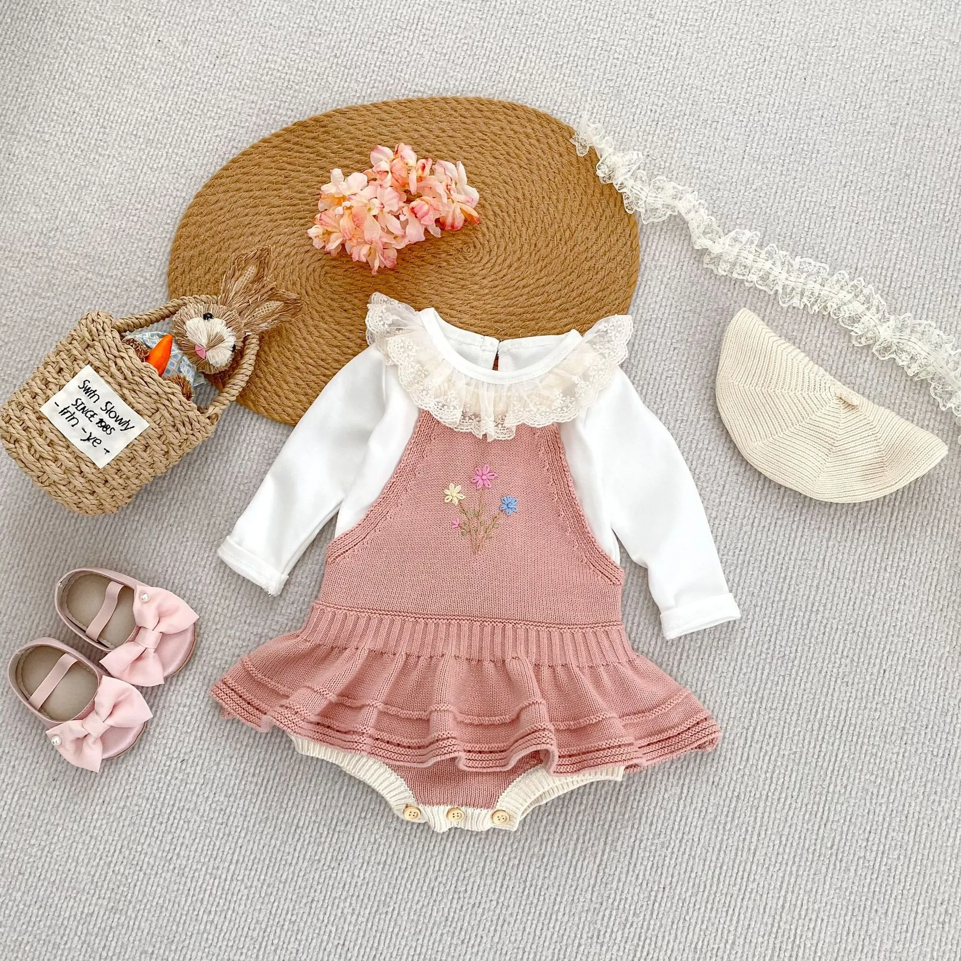 Girls' Fashion Personalized Embroidered Knitted Jumpsuit – Stylish, Comfortable, and Customizable