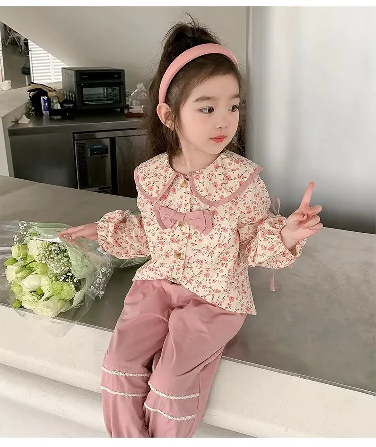 Girls' Floral Bow Two-Piece Set: Stylish, Comfortable, and Perfect for Every Occasion