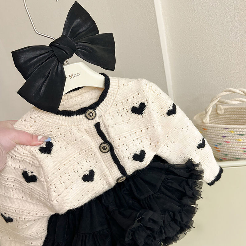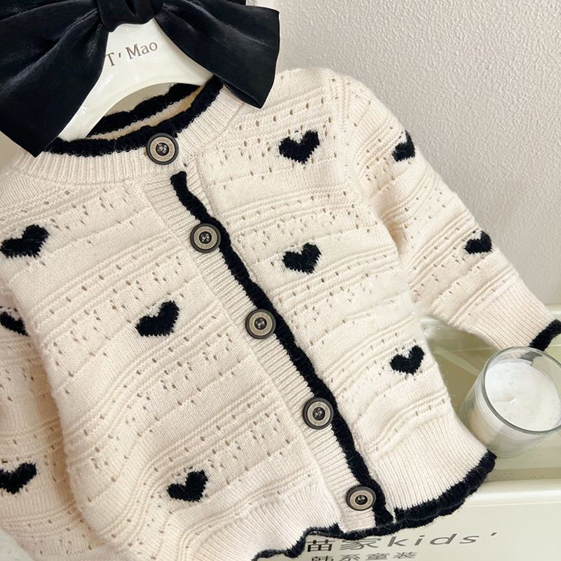H1: Adorable Girl's Love Sweater Cardigan Spring and Autumn Coat