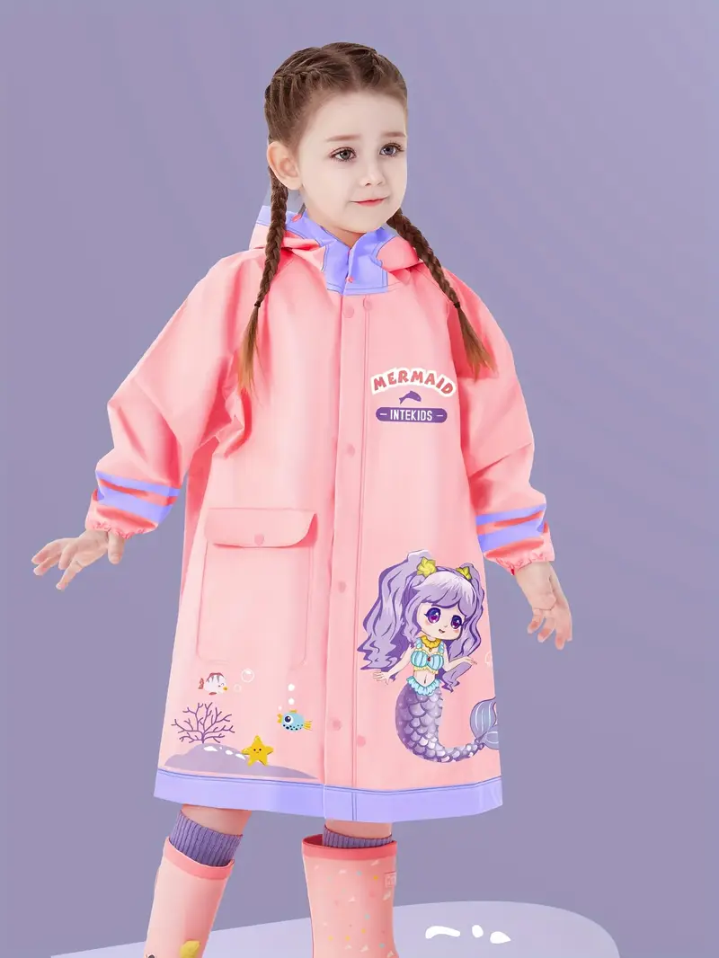 Girls Pink Mermaid Pattern Raincoat Adorable, Waterproof & Durable for All Seasons
