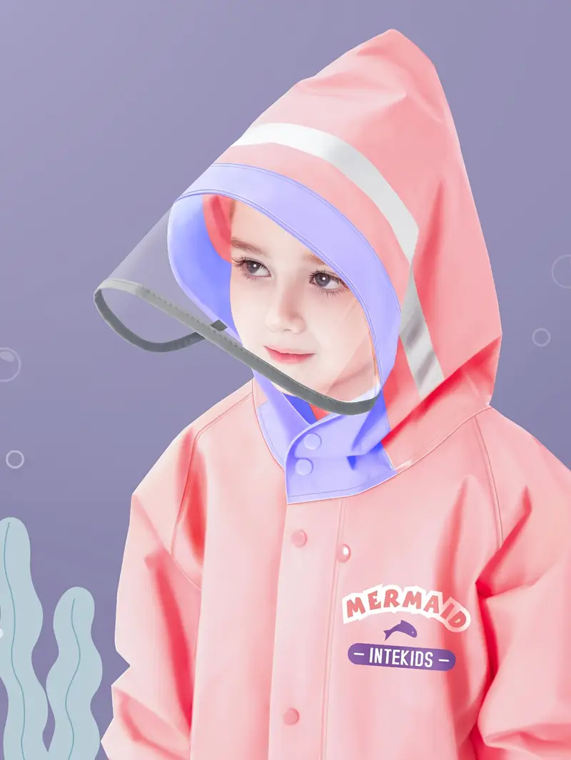 Girls Pink Mermaid Pattern Raincoat Adorable, Waterproof & Durable for All Seasons