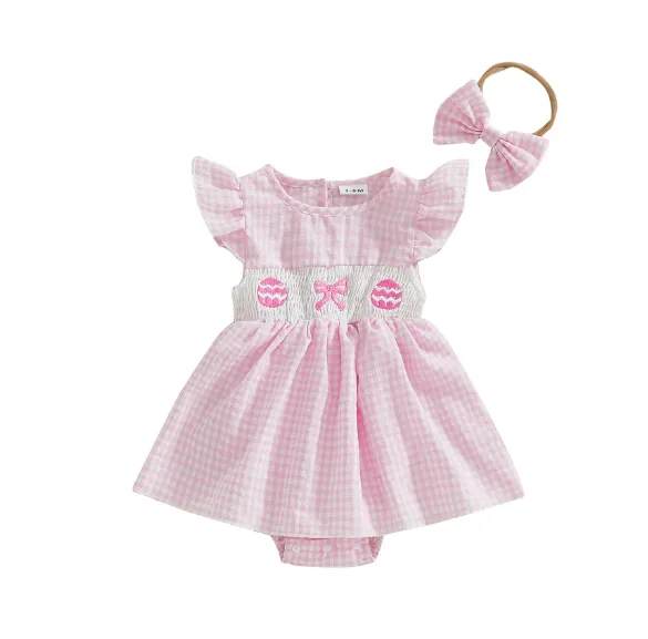 Girls' Plaid Egg Embroidery Smocking Romper – Stylish, Comfortable, and Perfect for Every Occasion
