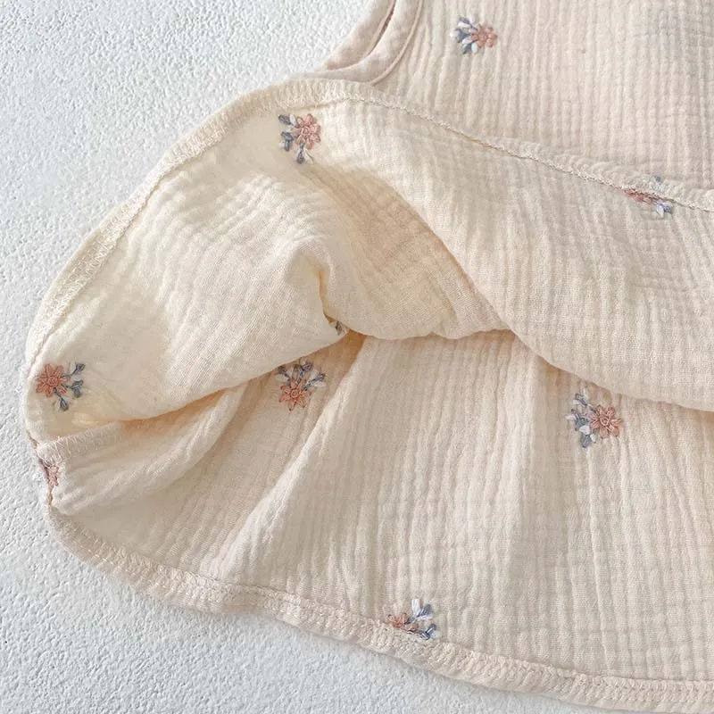 Girls' Plaid Embroidered Sleeveless Short Skirt Two-piece Set