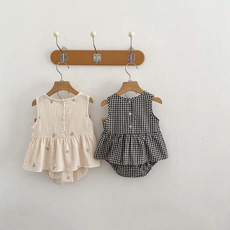 Home › Plants, Gifts, Toys & More › Gift-tree-girls-plaid-embroidered-sleeveless-short-skirt-two-piece-set