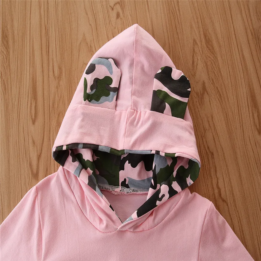 Girls Spring And Autumn Hooded Sweater Small Suit Ins Type Female Baby Camouflage 2 Piece Set