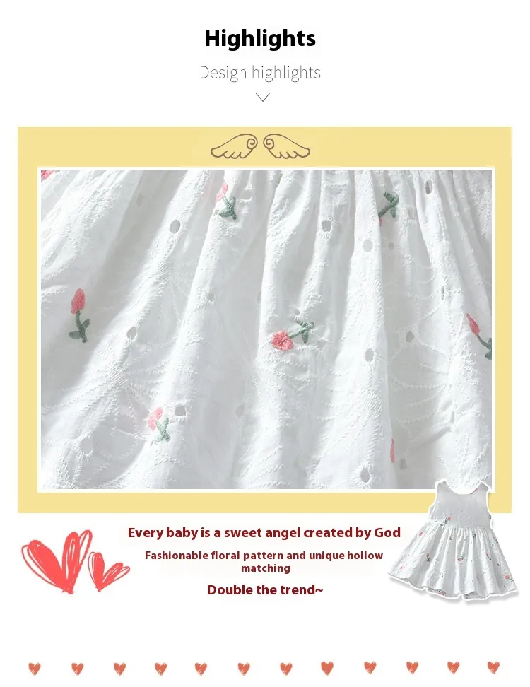 Introducing the Girls' Summer Floral Hollow Sleeveless Vest Dress: Stylish and Breezy for Warm Days