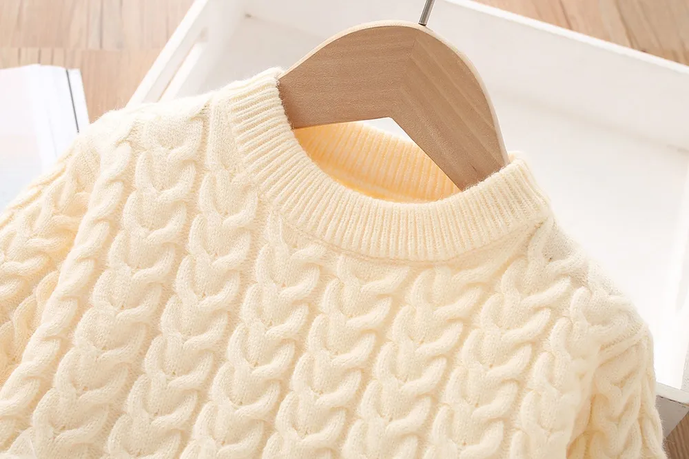 The twist-knitted design not only provides added warmth but also brings a stylish and textured look to the sweater suit. The cute and trendy design makes this set versatile enough for everyday wear, while also elevating your child's fashion game. Whether worn at home, at school, or for a casual outing, this sweater suit is sure to turn heads and keep your little one looking stylish.