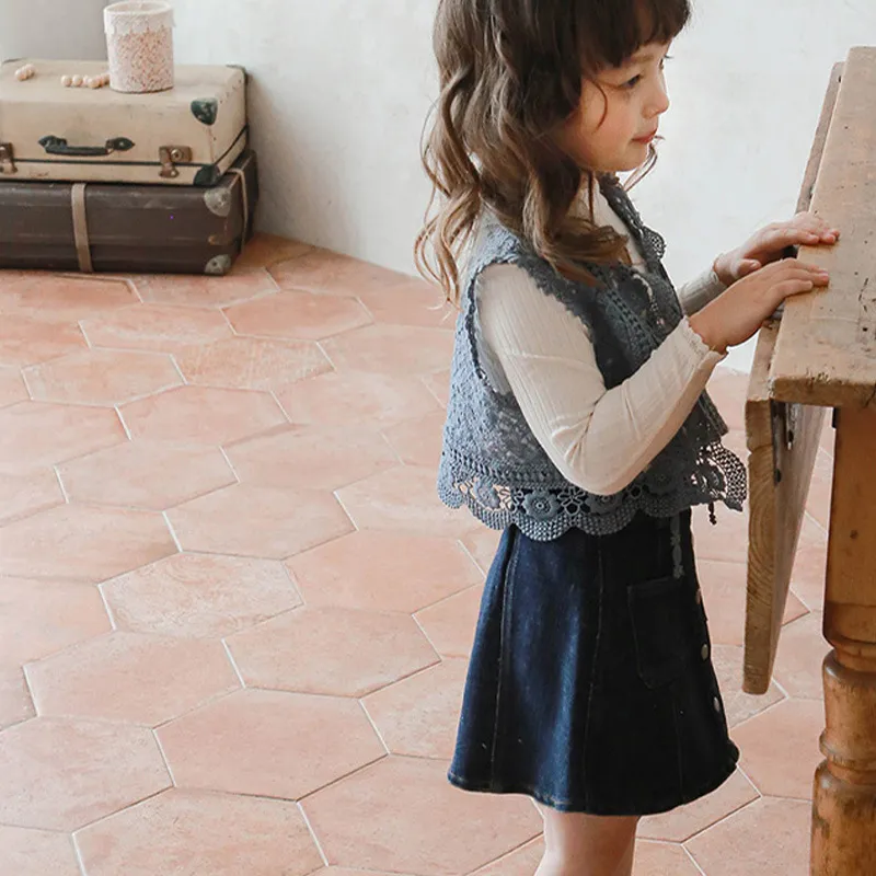 The Girls Wear A Vest with Hollow Flowers is a stylish and playful addition to any young girl's wardrobe, combining a fresh, airy design with a touch of elegance. Featuring intricate hollow flower details, this vest adds a unique and feminine touch to casual or dressy outfits. The delicate floral cutouts create a visually appealing pattern, making it a standout piece for any occasion. Perfect for layering over a simple t-shirt or blouse, this vest is a versatile choice for both casual outings and more special events.